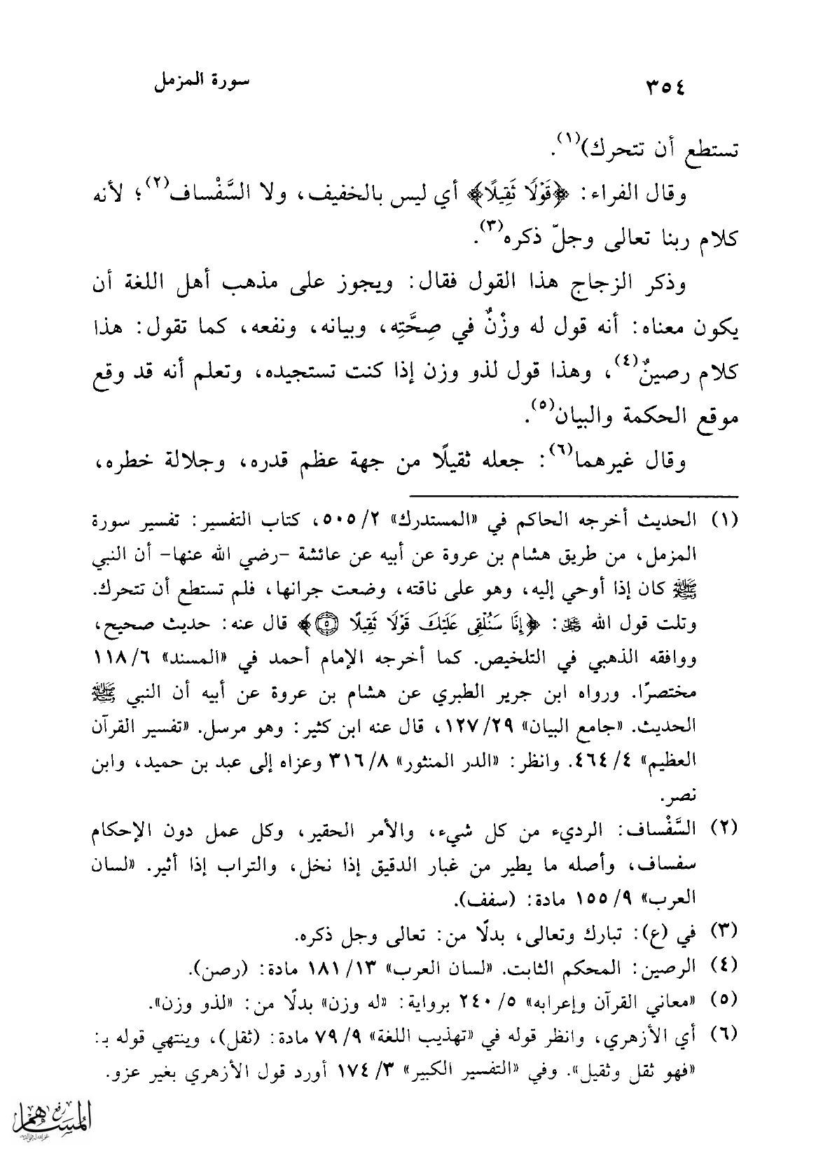 (¬3) ورد قوله في "جامع البيان" 29/ 129، و"الكشف والبيان" 12: 200/ ب، و"زاد المسير" 8/ 114، و"الدر المنثور" 8/ 317 وعزاه إلى عبد بن حميد، وابن نصر، و"السنن الكبرى" 3/ 30، ح: 4755، كتاب الصلاة: باب من فتر عن قيام الليل.