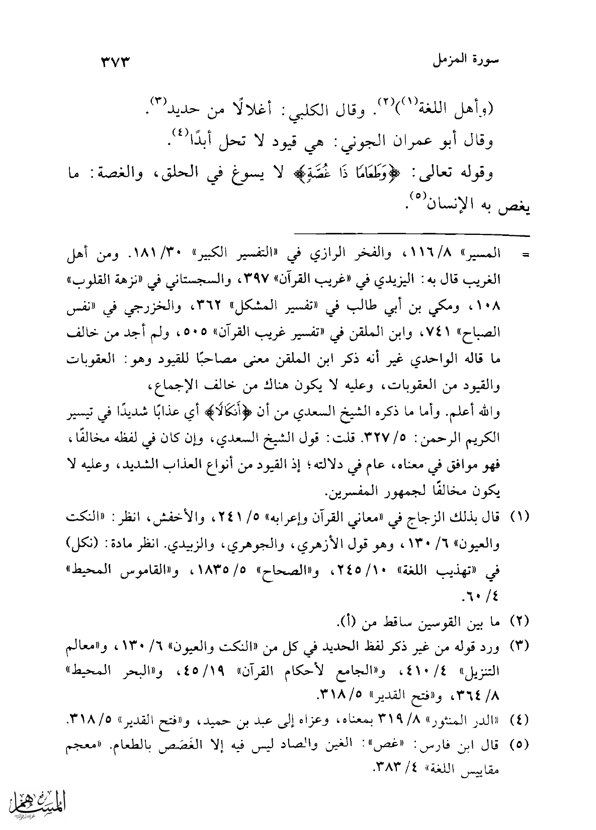 (¬2) "معاني القرآن وإعرابه" 5/ 242. ولـ "يوم" أوجه أخرى في نصبها، فليراجع في ذلك "التبيان في إعراب القرآن" للعكبري: 2/ 1247، و "الدر المصون" 6/ 407.