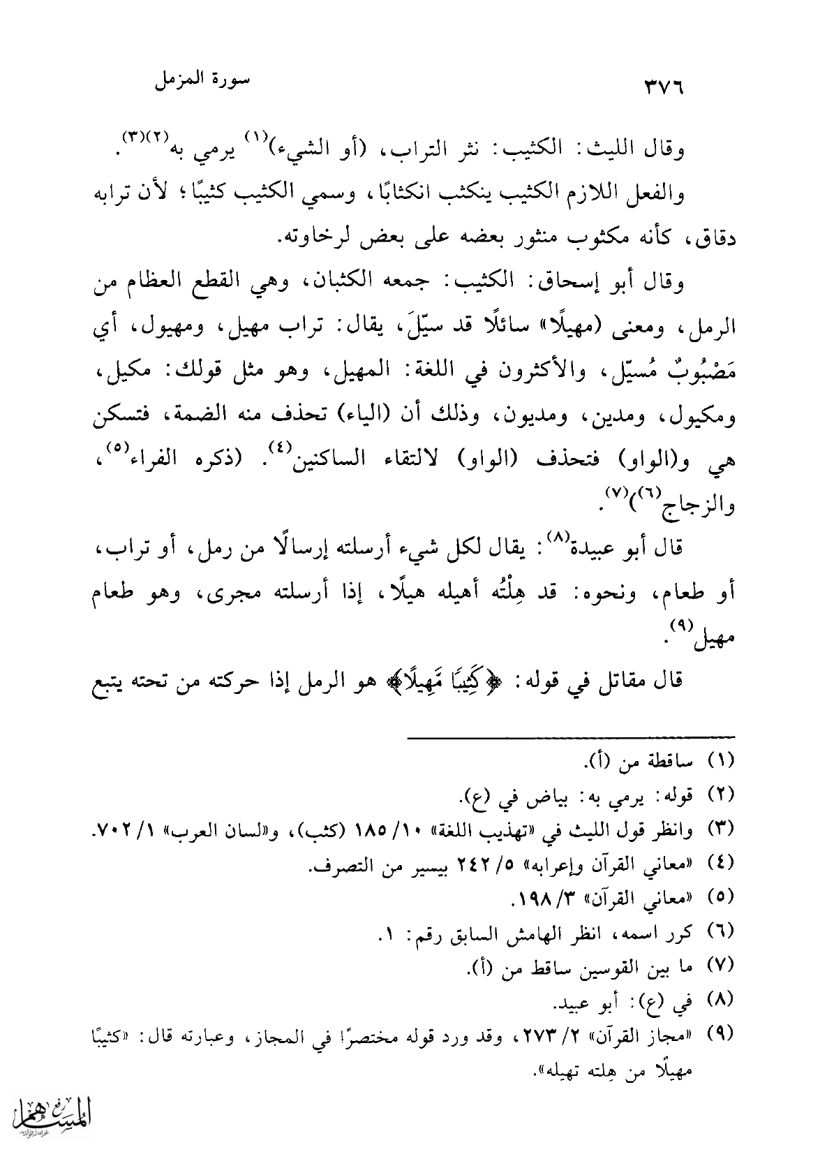 (5) ما بين القوسين من قول الأزهري، نقله عنه الواحدي من "تهذيب اللغة".