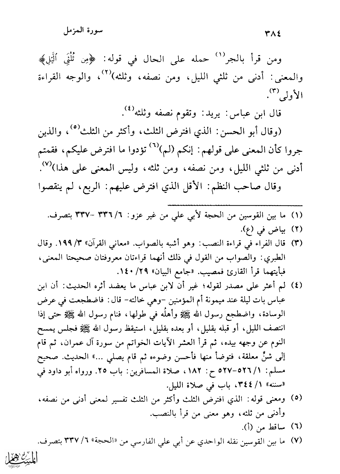 (¬5) "الكشف والبيان" 12/ 203/ ب، و"معالم التنزيل" 4/ 411، و"زاد المسير" 8/ 118، و"التفسير الكبير" 30/ 187، و"الجامع لأحكام القرآن" 19/ 52، و"لباب التأويل" 4/ 325.