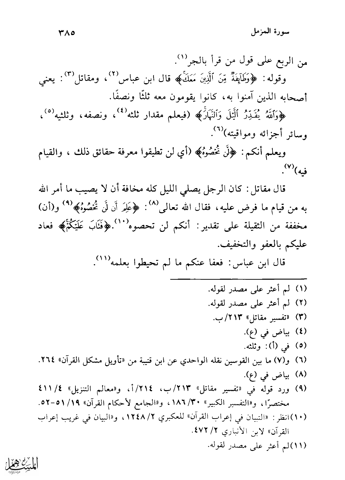 (¬2) "جامع البيان" 29/ 141، و"الكشف والبيان" جـ: 12: 203/ ب، و"الجامع لأحكام القرآن" 19/ 52، و"فتح القدير" 5/ 321، وانظر: "تفسير السدي" 465.