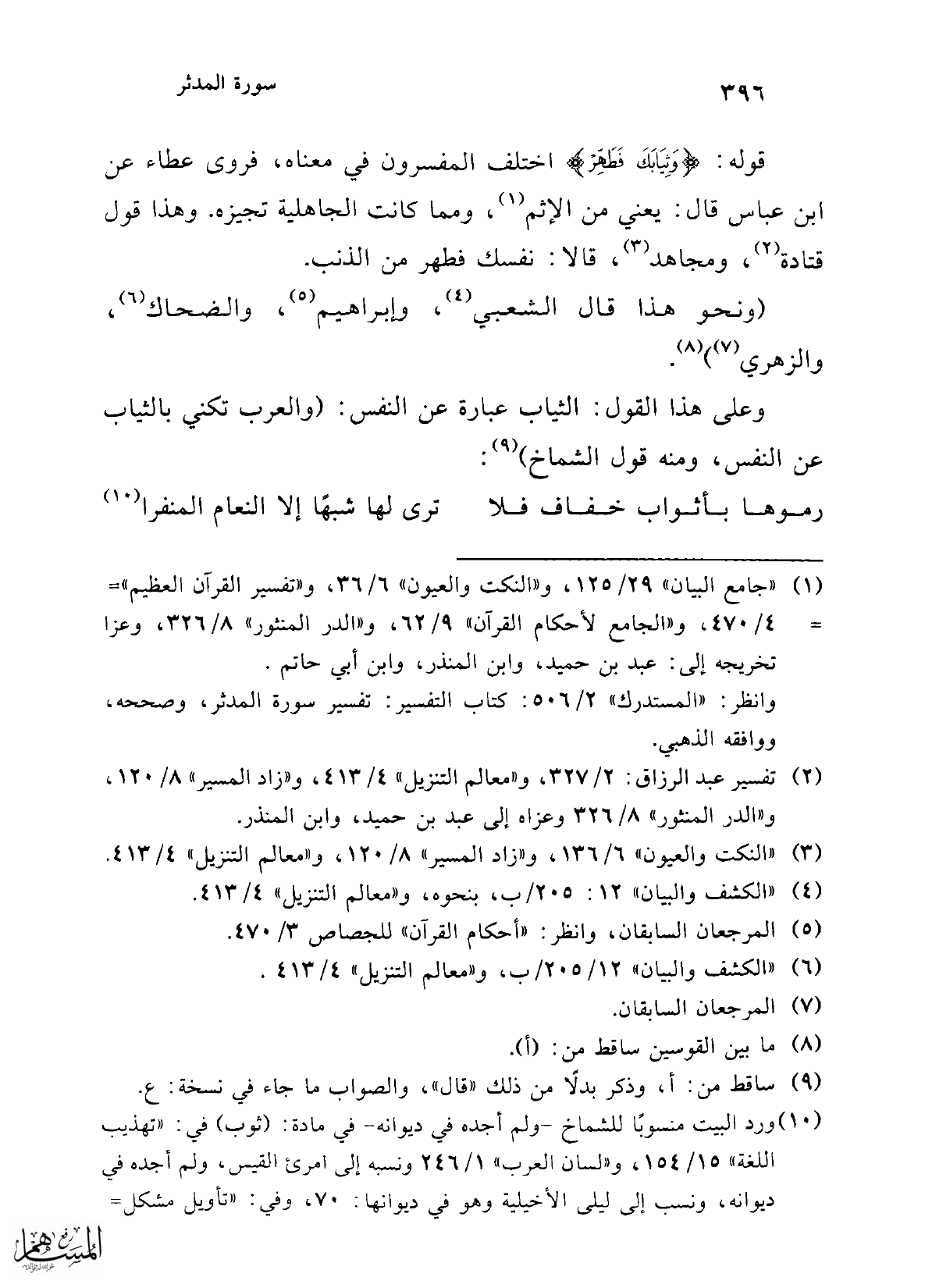 (¬10) أي الأزهري في التهذيب: 15/ 154، مادة: (ثوب)؛ لأن رواية ابن عباس بهذا النص وردت في التهذيب.