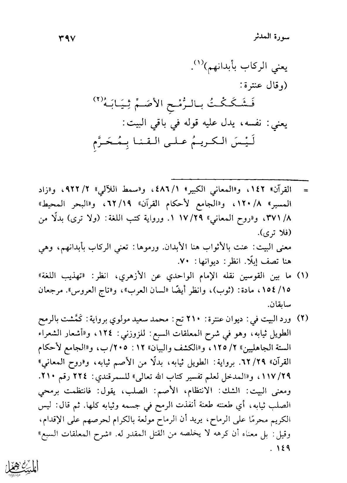 (¬3) ورد البيت منسوبًا إليه في: "المدخل" لعلم تفسير كتاب الله تعالى: 224 رقم 209، و"جامع البيان": 29/ 145 برواية (إني)، و"الكشف والبيان" 12: 255/ ب، و"المحرر الوجيز" 5/ 392، و"زاد المسير" 8/ 121، و"الجامع لأحكام القرآن" 19/ 62، و"البحر المحيط" 8/ 271، برواية (إني)، و"غادر" بدلًا من "فاجر"، و"تفسير القرآن العظيم" 4/ 470، و"الدر المنثور" 8/ 326، و"روح المعاني" 29/ 117 "فإني"، وورد غير منسوب في مادة (ثوب): انظر: "تهذيب اللغة" 15/ 154، و"لسان العرب" 1/ 245، و"تاج العروس" 1/ 170، وكلها برواية "إني" و"غادر" بدلًا من فاجر، و"تفسير غريب القرآن" 495 برواية "إني" و"غادر"، و"النكت والعيون" 6/ 136، و"فتح القدير" 5/ 324.