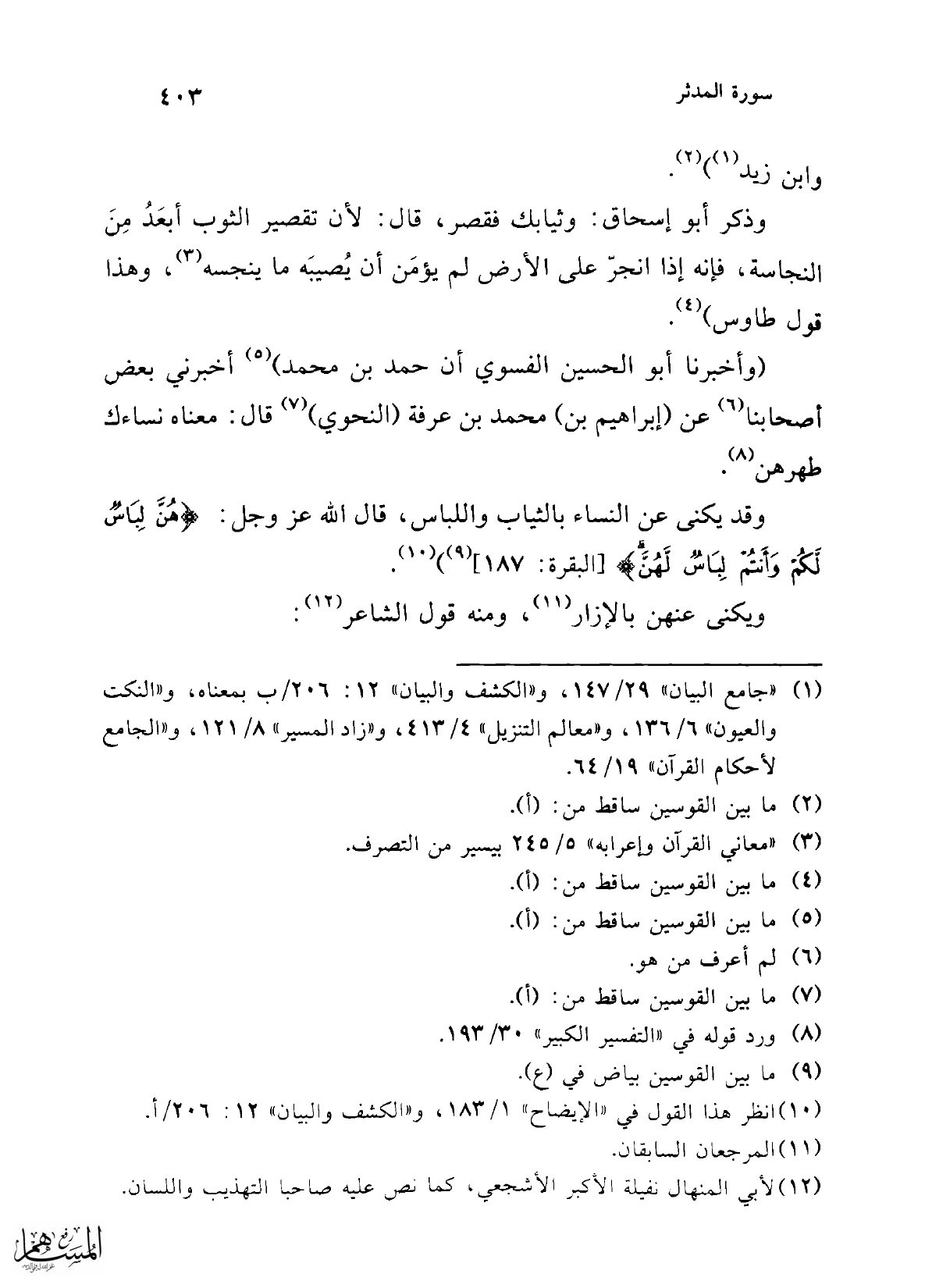(¬7) المراجع السابقة عدا تفسير عبد الرزاق.