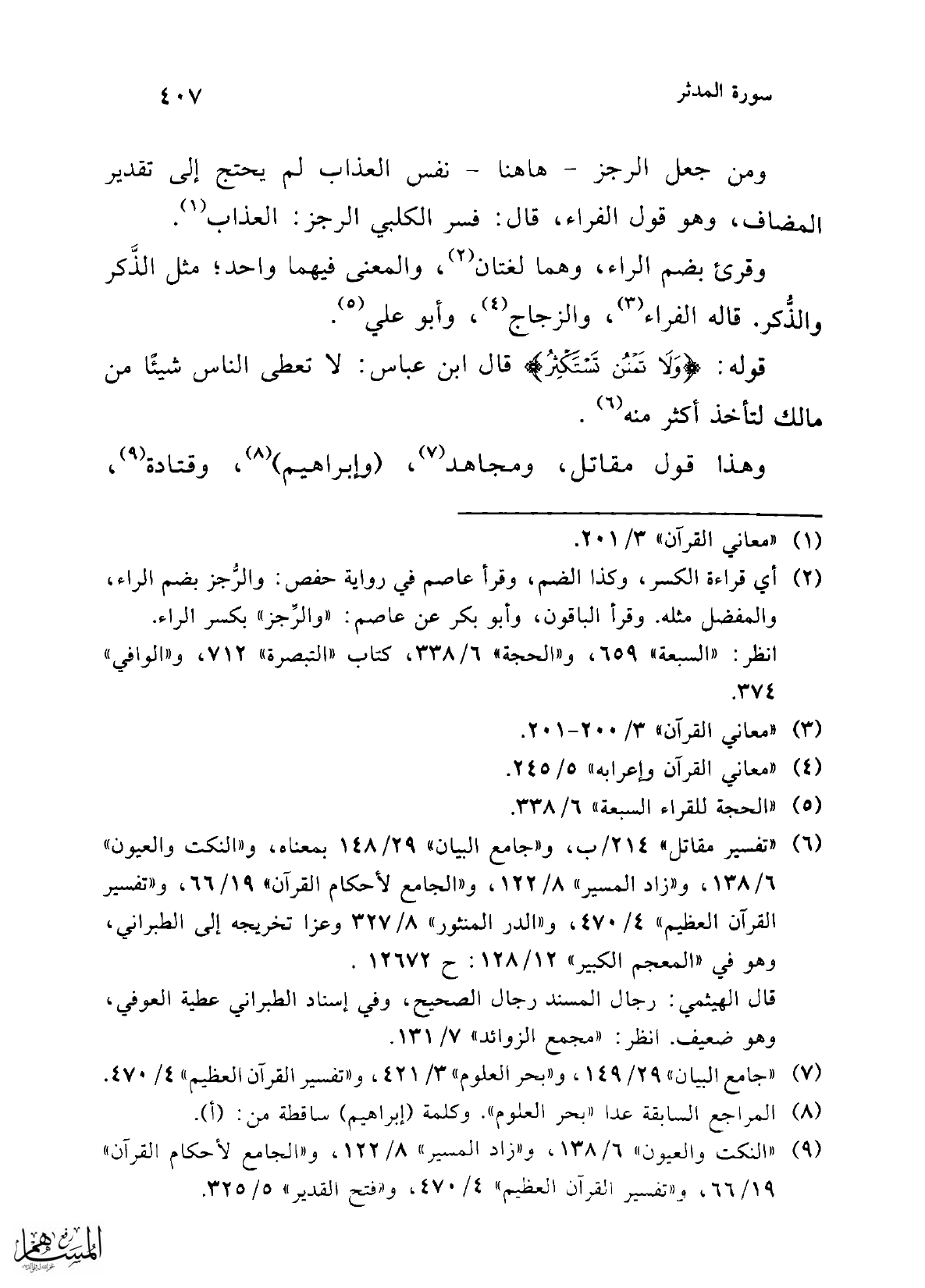 (¬7) ورد قوله في: "الكشف والبيان" ج: 12: 207/ أ، و"الجامع لأحكام القرآن" 9/ 66، و"فتح القدير" 5/ 325.