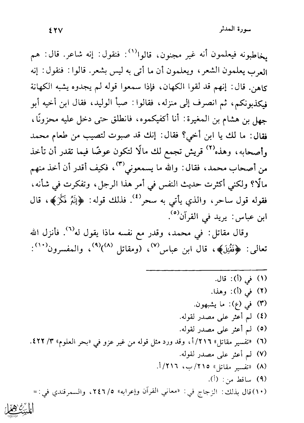(¬9) "معاني القرآن وإعرابه" 5/ 247 بنصه.