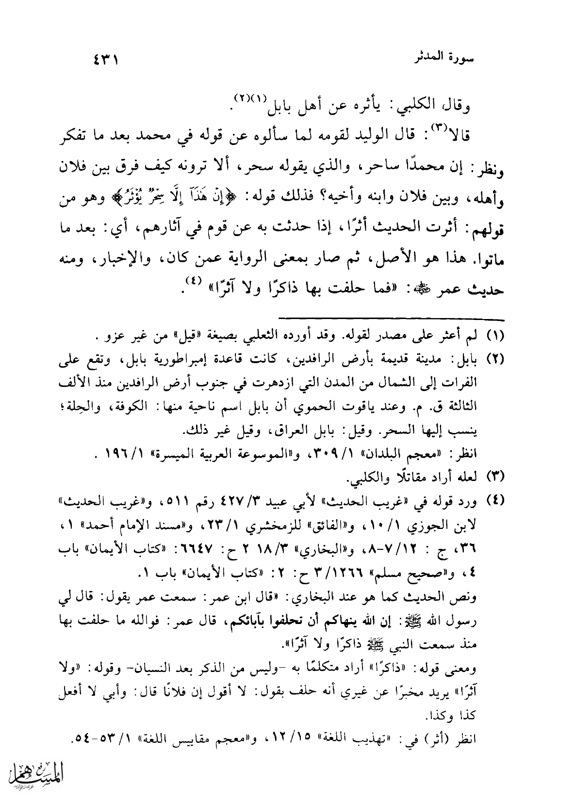 (¬1) بمعناه في: "التفسير الكبير" 30/ 202.