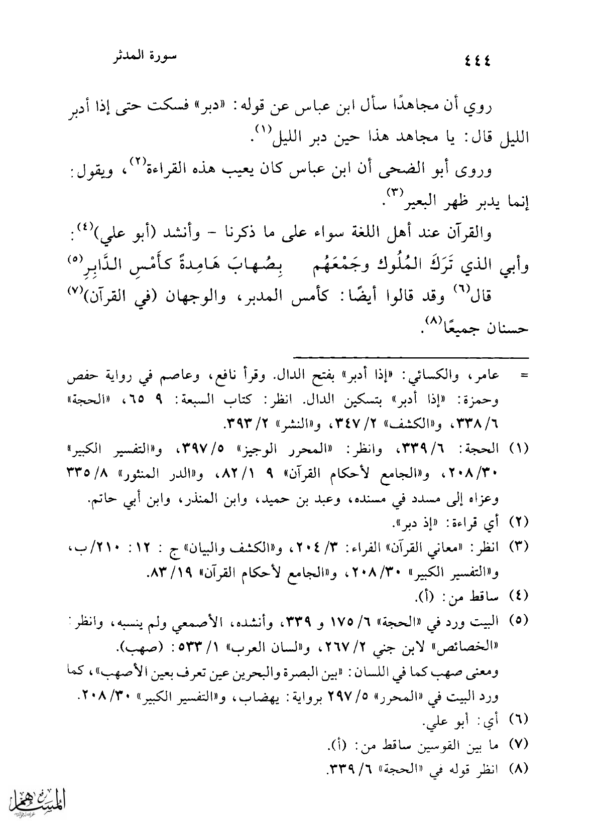 (¬9) في: أ، وع: التأنيث، والصواب ما أثبته.