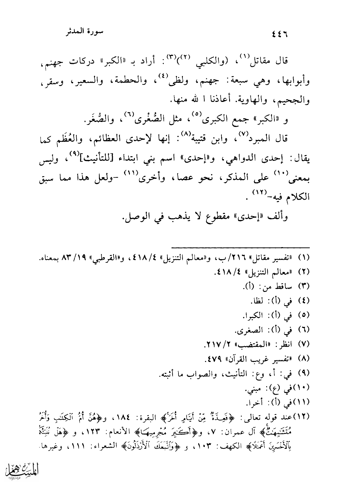 (¬7) ما بين القوسين نقله الإمام الواحدي عن أبي على الفارسي بتصرف. انظر: "الحجة" 6/ 339 - 341.