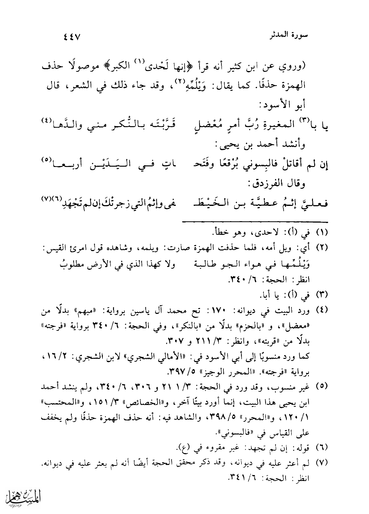 (¬6) "معاني القرآن وإعرابه" 5/ 249 بتصرف.