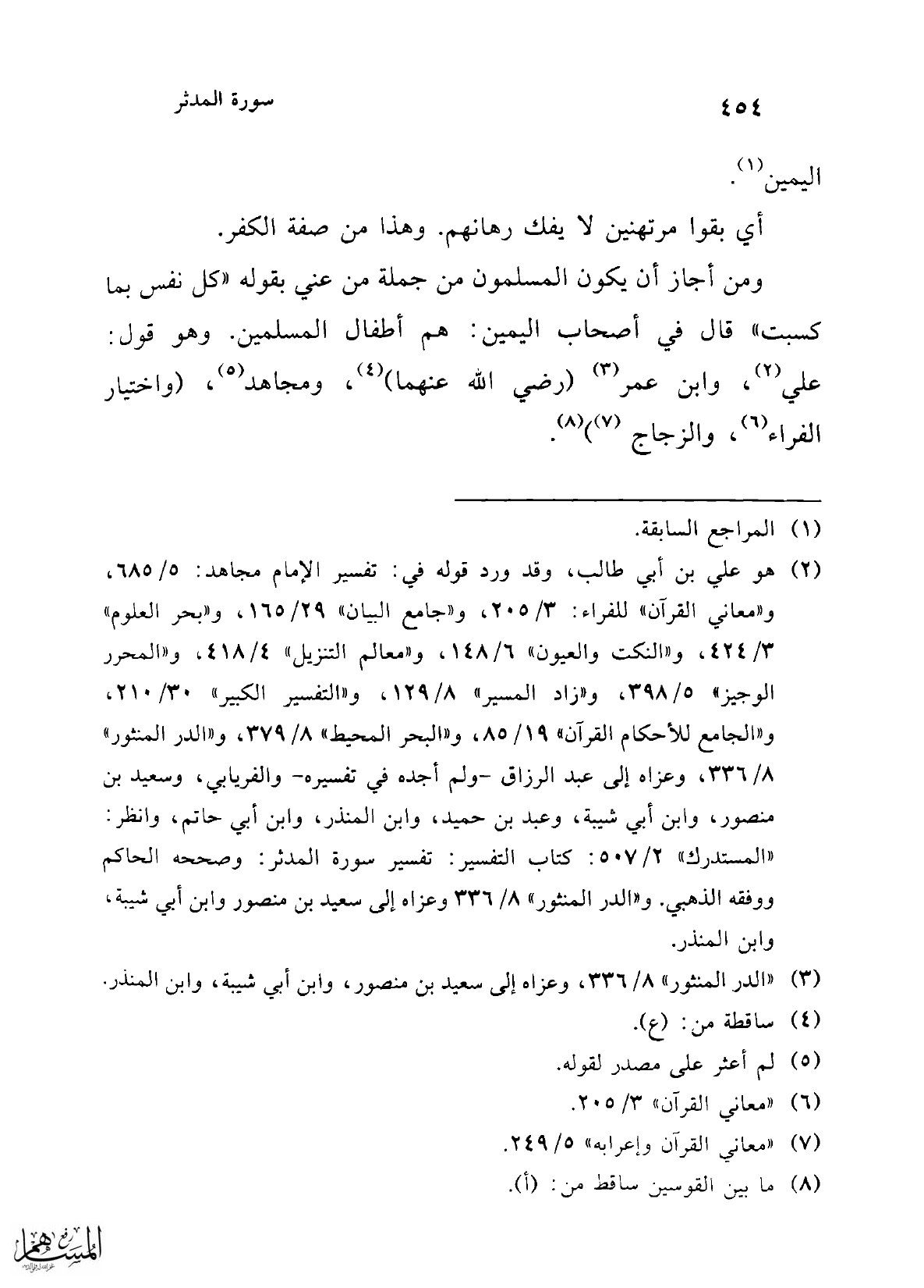 (¬7) "الدر المنثور" 8/ 337، وعزاه إلى ابن أبي حاتم.