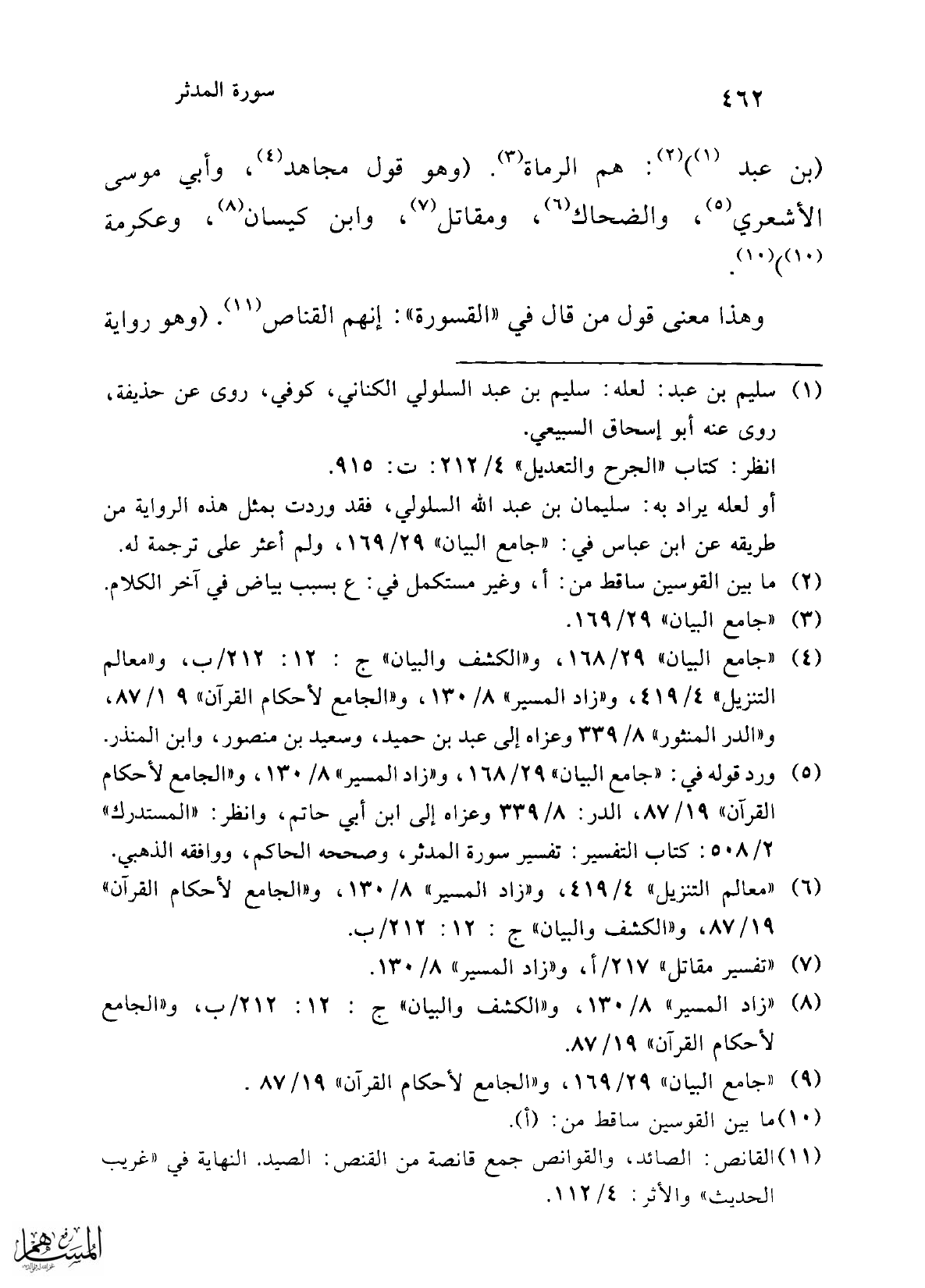(¬8) "الكشف والبيان" ج: 12: 213/ ب، و"معالم التنزيل" 4/ 420، و"الجامع لأحكام القرآن" 19/ 88.