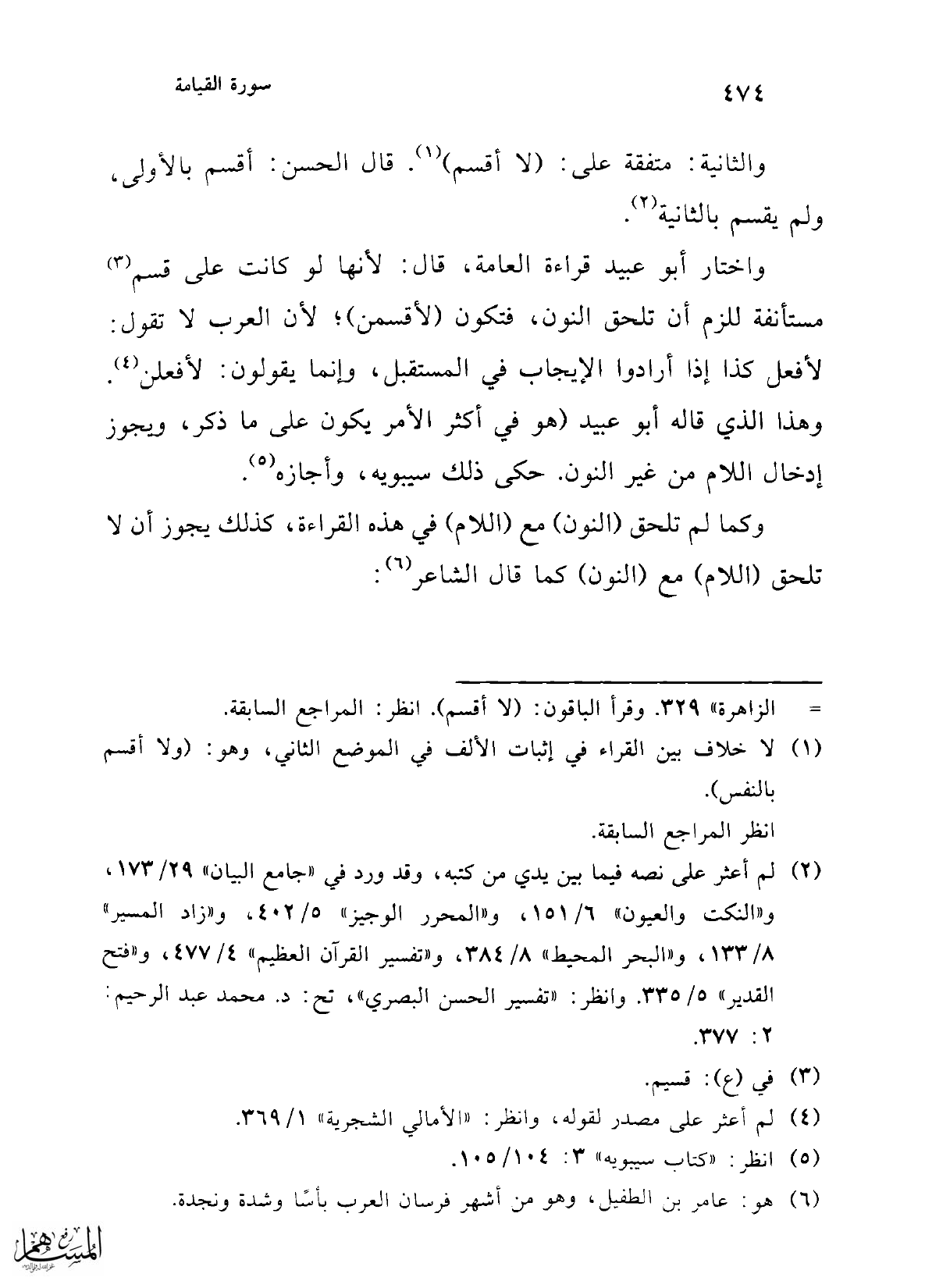 (¬9) "الكشف والبيان" 13: 3/ ب، و"معالم التنزيل" 4/ 421، و"الجامع لأحكام القرآن" 19/ 91، و"لباب التأويل" 4/ 333، و"فتح القدير" 5/ 335.