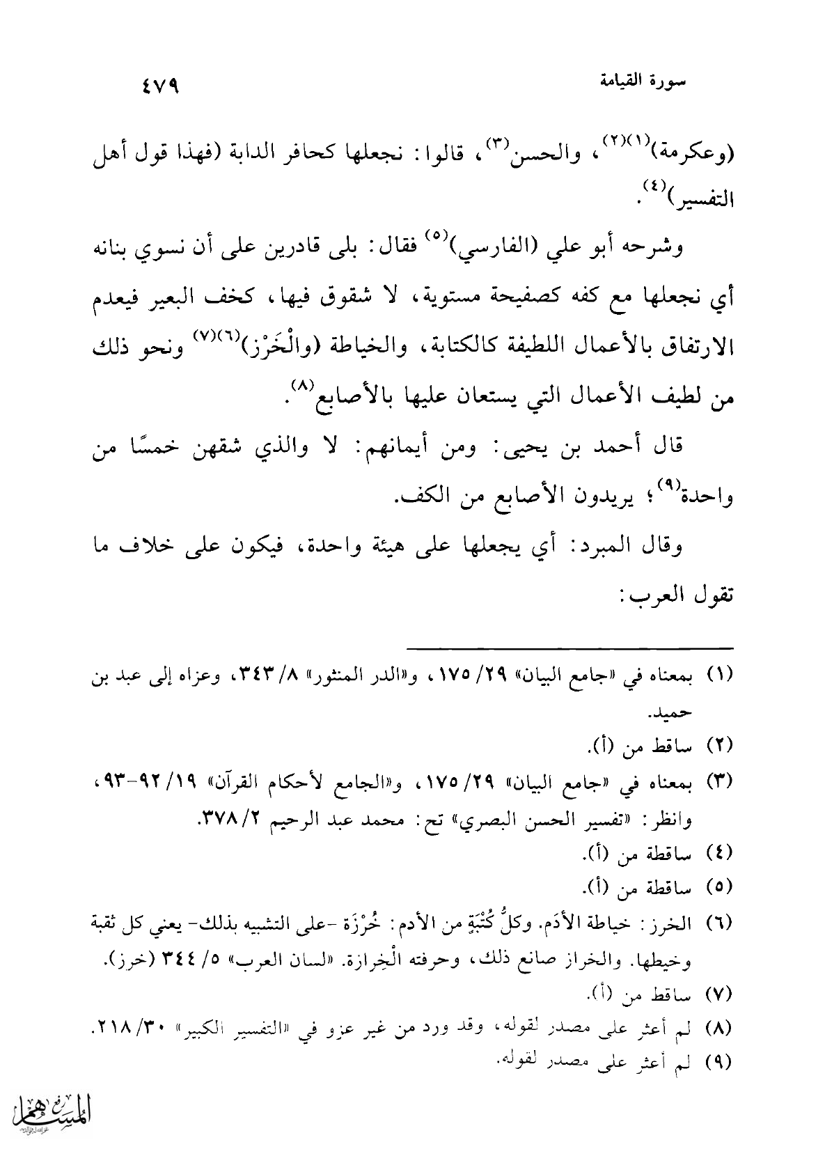 = التفسير تفسير سورة القيامة، وصححه الحاكم ووافقه الذهبي، وقد وردت هذه الرواية: أيضًا عن سعيد بن جبير في "تأويل مشكل القرآن" 346، و"جامع البيان". مرجع سابق، و"الكشف والبيان" 13: 4/ ب، و"معالم التنزيل" 4/ 421، و"زاد المسير" 8/ 134، و"التفسير الكبير" 30/ 218، و"الجامع لأحكام لقرآن" 19/ 93، و"لباب التأويل" 4/ 334.