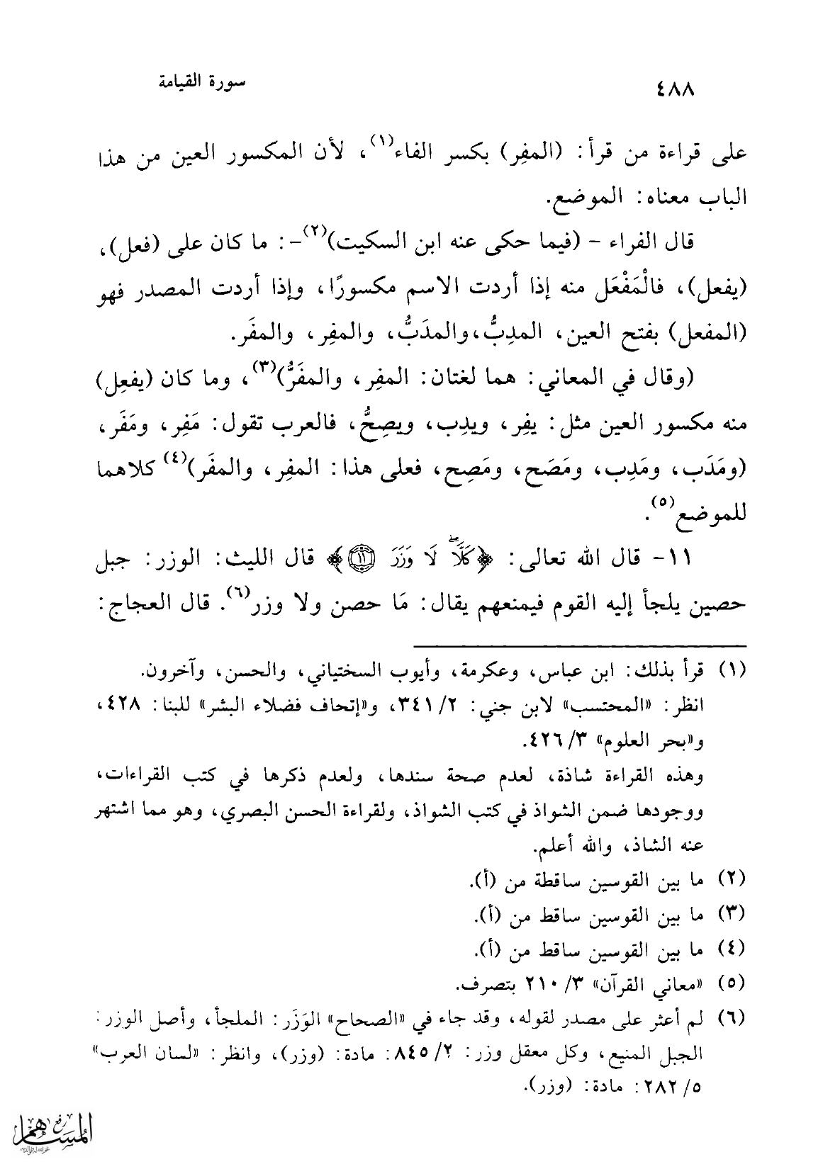 (¬4) قال بذلك: ابن عباس، ومُطرف بن الشخير، والحسن، ومجاهد، وأبو قلابة، وقتادة، وسعيد بن جبير، والضحاك، وابن زيد، والسدي. وابن مسعود ومقاتل. انظر: "تفسير مقاتل" 218/ أ، و "تفسير عبد الرزاق" 2/ 333، و"جامع البيان" 29/ 181 - 282، و"بحر العلوم" 3/ 426، و"الكشف والبيان" 13: 5/ ب، و"معالم التنزيل" 4/ 422، و"النكت والعيون" 6/ 154. وممن قال بذلك أيضًا: أبو عبيدة في "غريب القرآن" 142، واليزيدي في "غريب القرآن" 401، وابن قتيبة في "تفسير غريب القرآن" 499، والسجستاني في "نزهة القلوب" 468، مكي بن أبي طالب في "العمدة في غريب القرآن" 325، والخزرجي في "نص الصباح" 2/ 748 كما ذهب إليه الطبري: "جامع البيان" 29/ 181، والسمرقندي في "بحر العلوم" 3/ 426، والماوردي في "النكت والعيون" 6/ 154، وقد رواه البخاري معلقًا: 3/ 318: كتاب التفسير 75، ولم أجد من خالف هذا القول من جميع المفسرين.