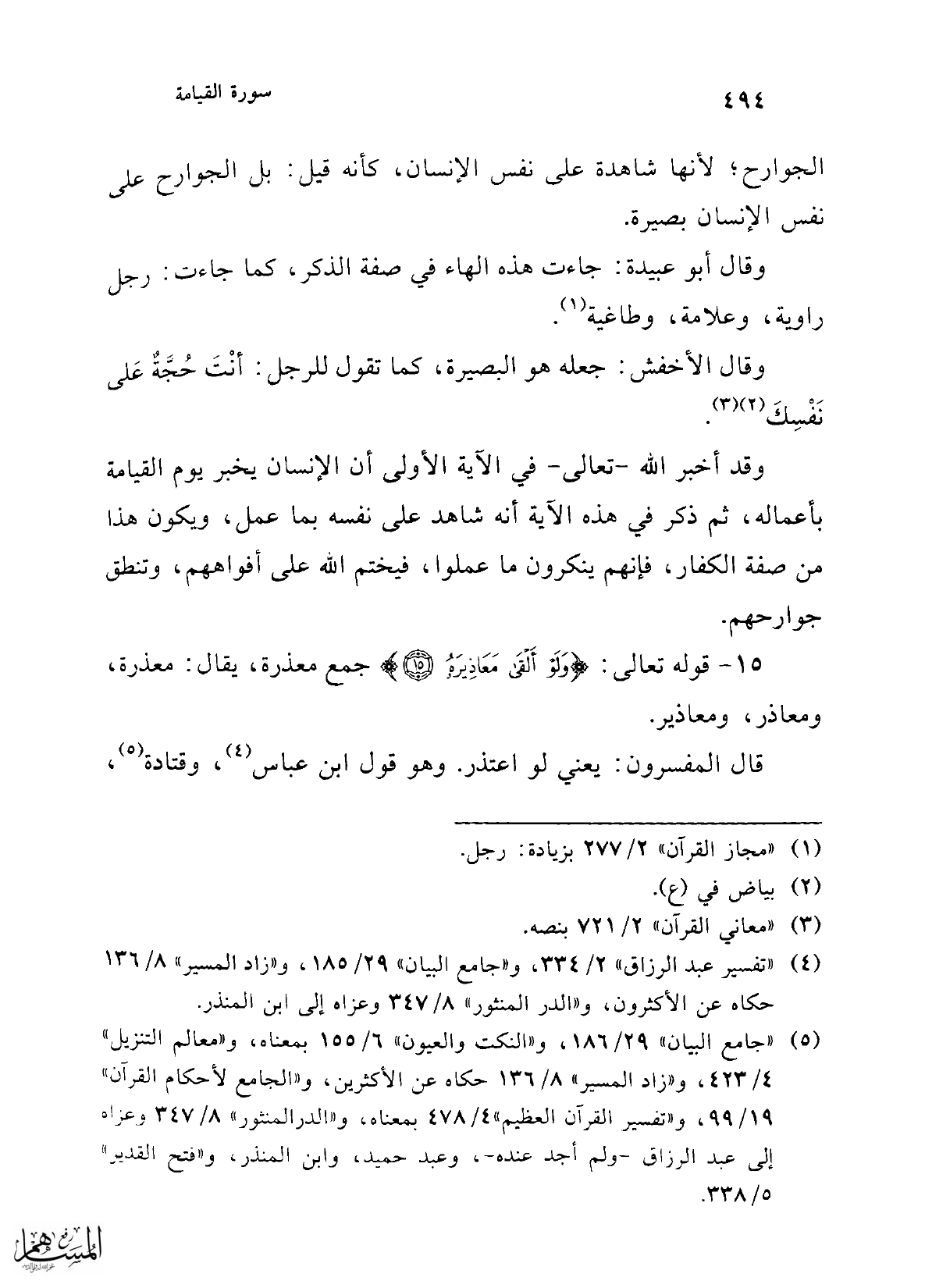 (¬1) لم أعثر عليه في "الكامل" ولا "المقتضب"، وقد ورد عنه منسوبًا إليه في "التفسير الكبير" 30/ 222، و"فتح القدير" 5/ 338.