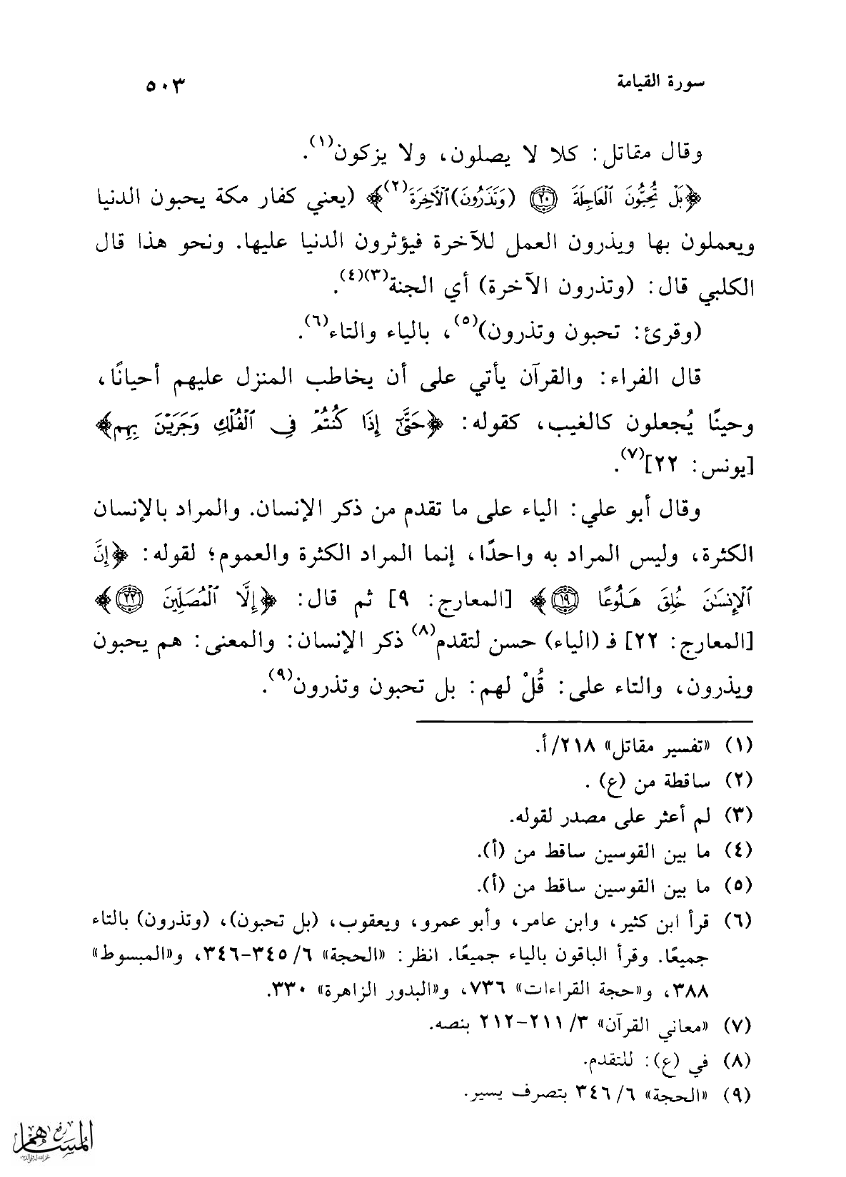 (¬7) وجدت في المراجع السابقة عن مراجع الحديث رواية (نَضَّر) بالتشديد، أما "المسند"، و (سنن الدارمي) , و (الزوائد) فإنه لم تشكل فيها الأحاديث.