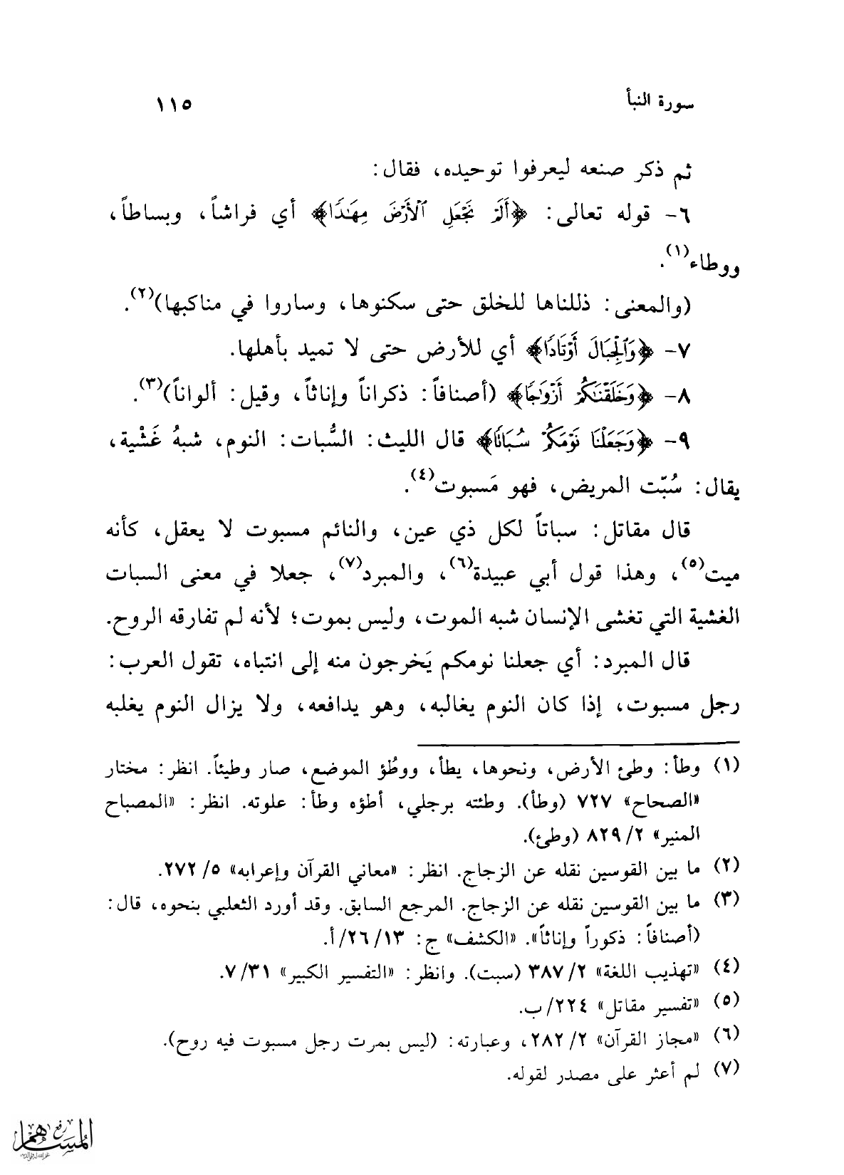 قال المبرد: أي جعلنا نومكم يَخرجون منه إلى انتباه، تقول العرب: رجل مسبوت، إذا كان النوم يغالبه، وهو يدافعه، ولا يزال النوم يغلبه