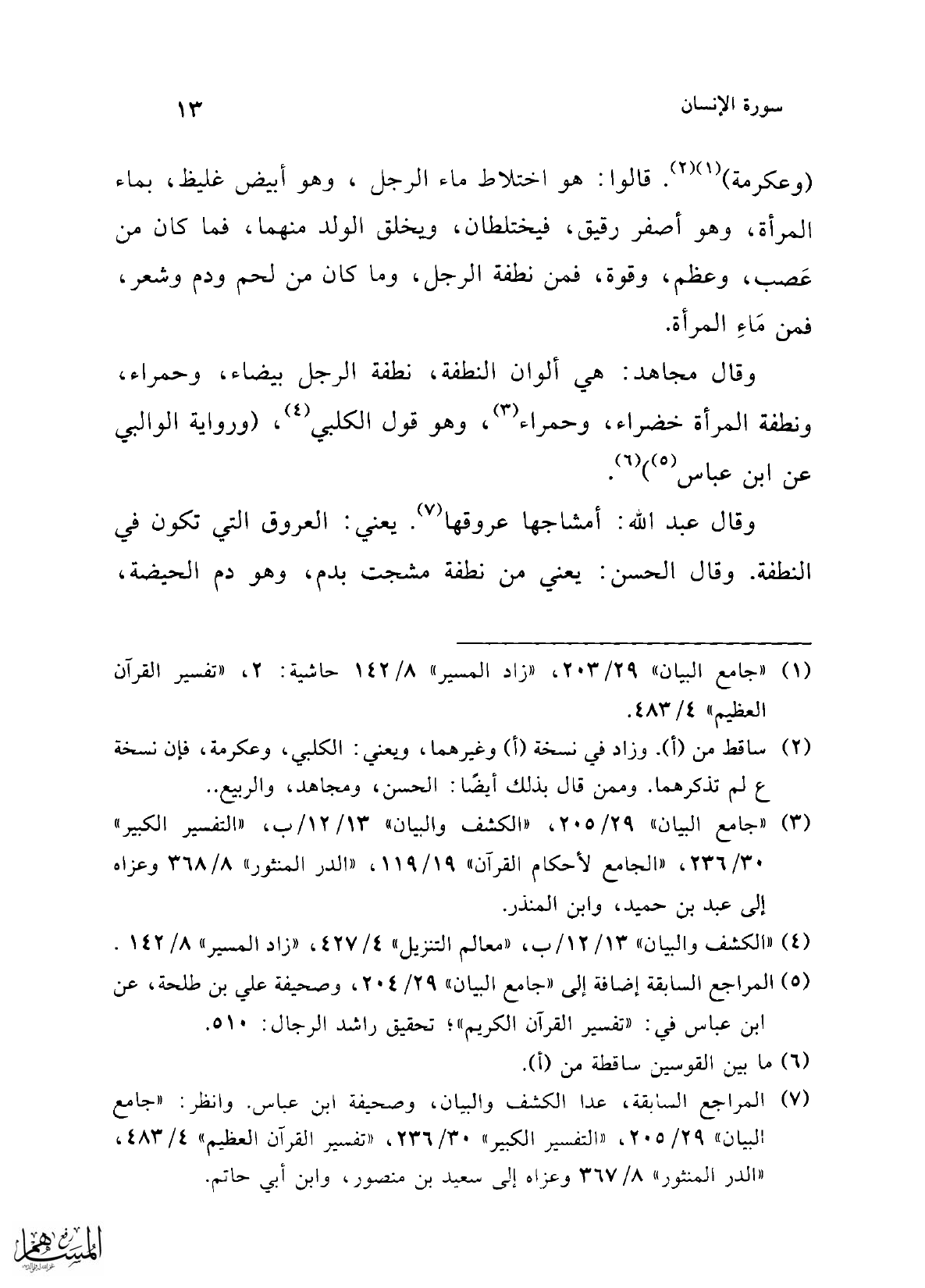 (¬1) "جامع البيان" 29/ 203، "زاد المسير" 8/ 142 حاشية: 2، "تفسير القرآن العظيم" 4/ 483.