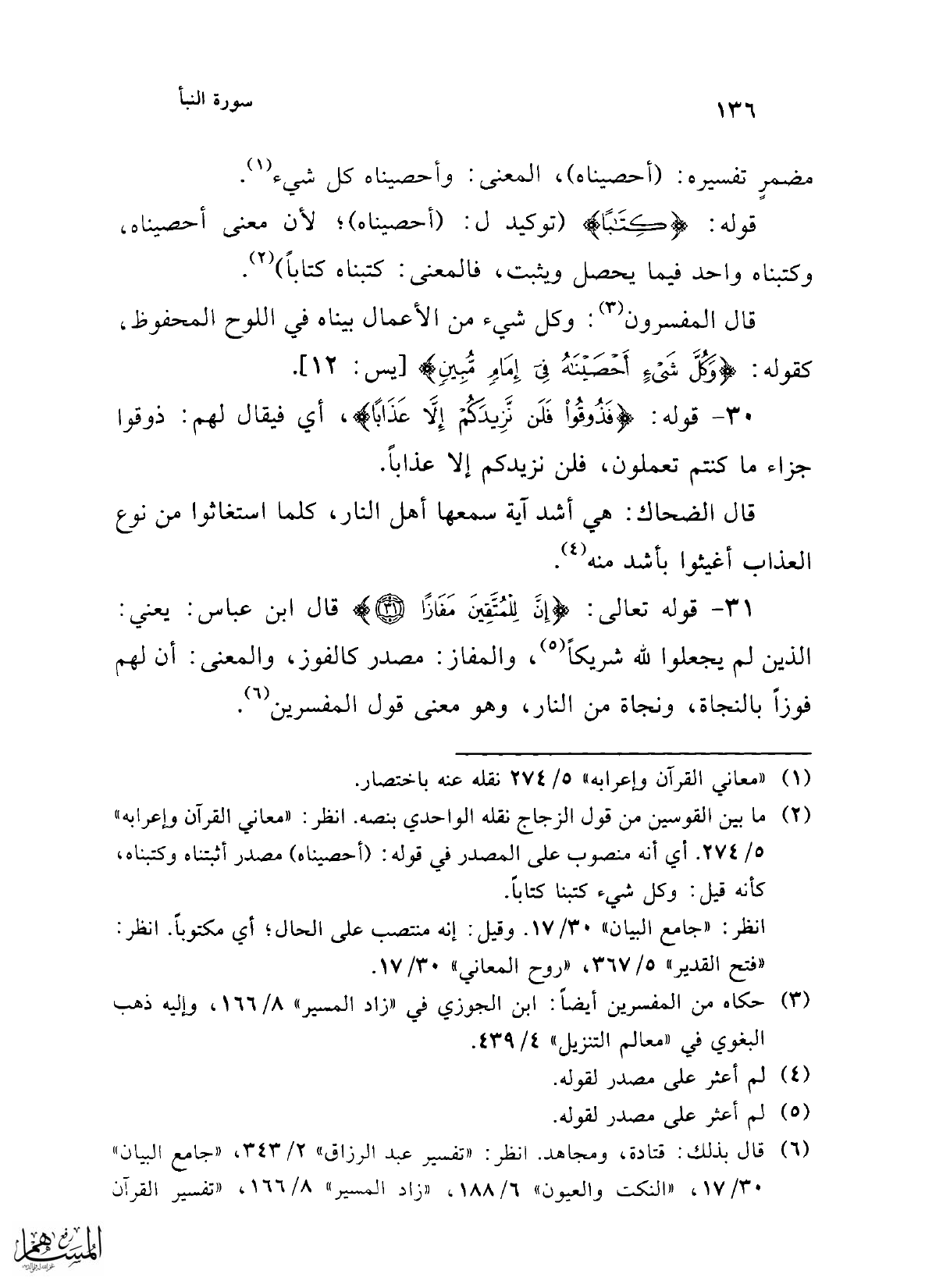 (¬1) "معاني القرآن وإعرابه" 5/ 274 نقله عنه باختصار.