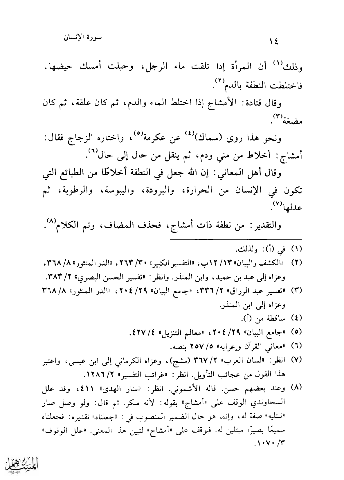 والتقدير: من نطفة ذات أمشاج، فحذف المضاف، وتم الكلام (¬8).