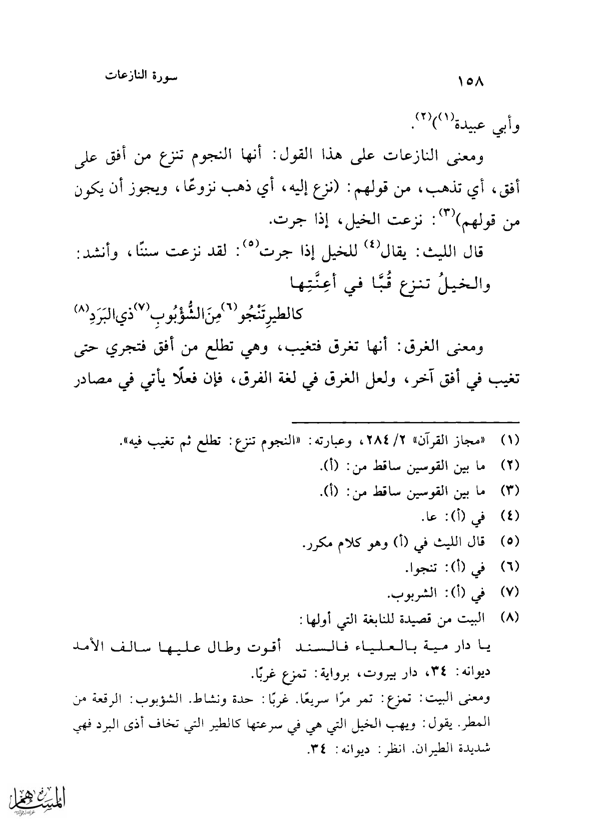 (¬1) "مجاز القرآن" 2/ 284، وعبارته: "النجوم تنزع: تطلع ثم تغيب فيه".