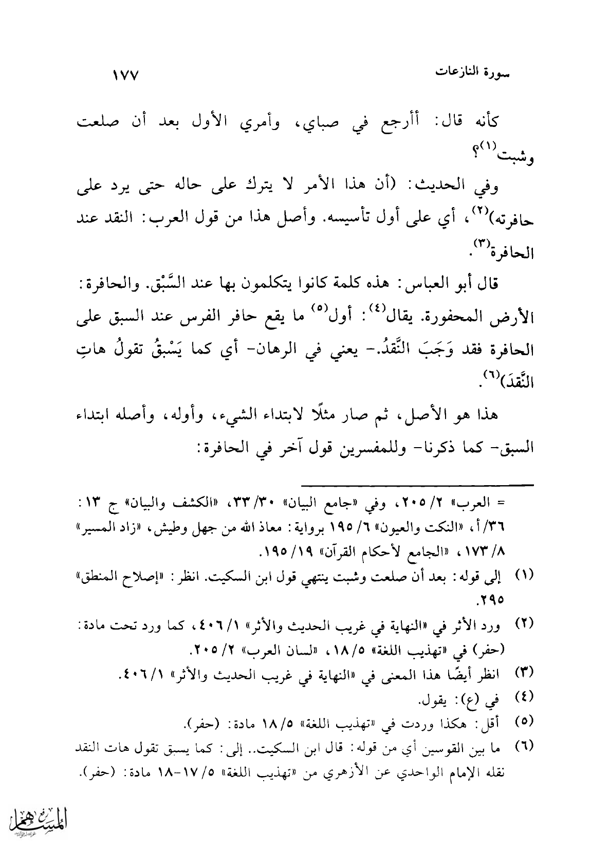 (¬6) ما بين القوسين أي من قوله: قال ابن السكيت .. إلى: كما يسبق تقول هات النقد نقله الإمام الواحدي عن الأزهري من "تهذيب اللغة" 5/ 17 - 18 مادة: (حفر).