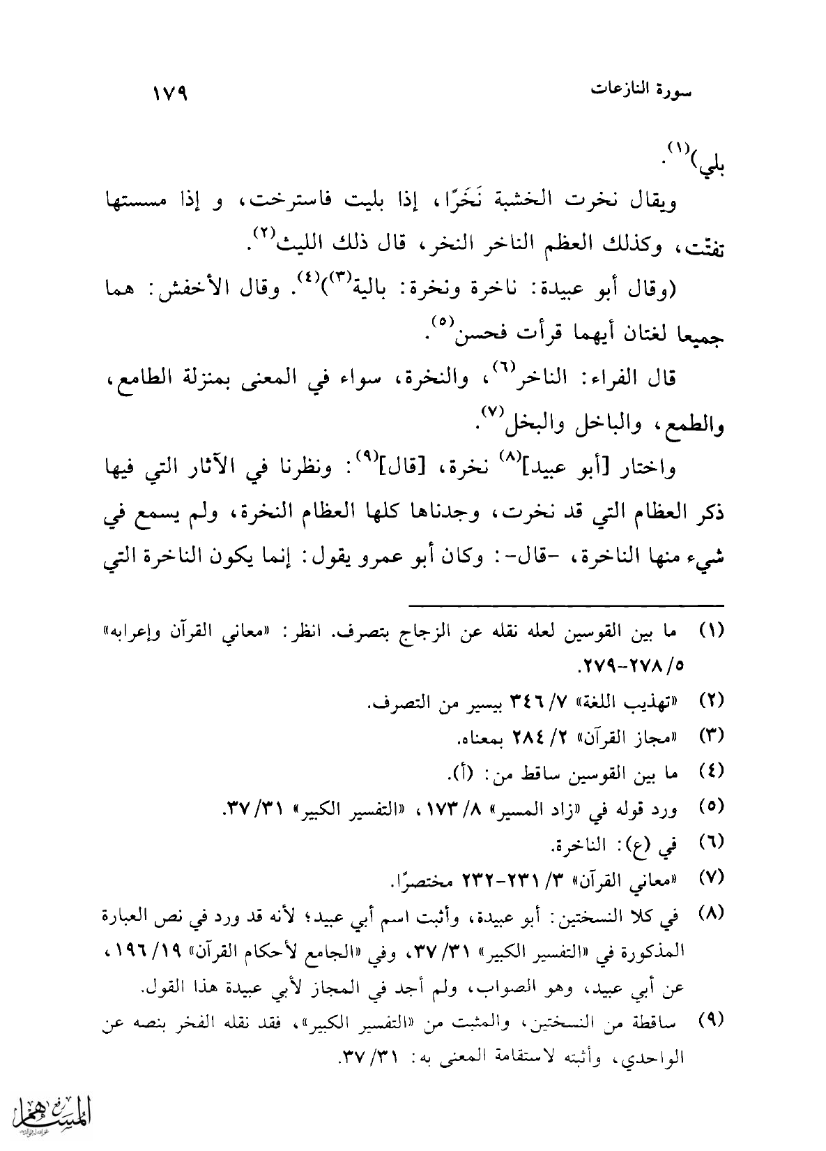 (¬8) في كلا النسختين: أبو عبيدة، وأثبت اسم أبي عبيد؛ لأنه قد ورد في نص العبارة المذكورة في "التفسير الكبير" 31/ 37، وفي "الجامع لأحكام القرآن" 19/ 196، عن أبي عبيد، وهو الصواب، ولم أجد في المجاز لأبي عبيدة هذا القول.
