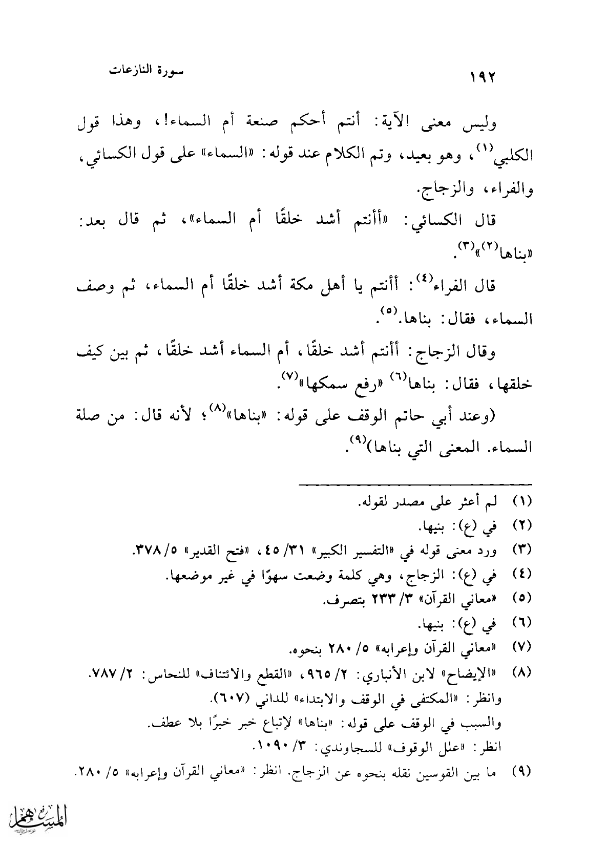 (¬9) ما بين القوسين نقله بنحوه عن الزجاج. انظر: "معاني القرآن وإعرابه" 5/ 280.