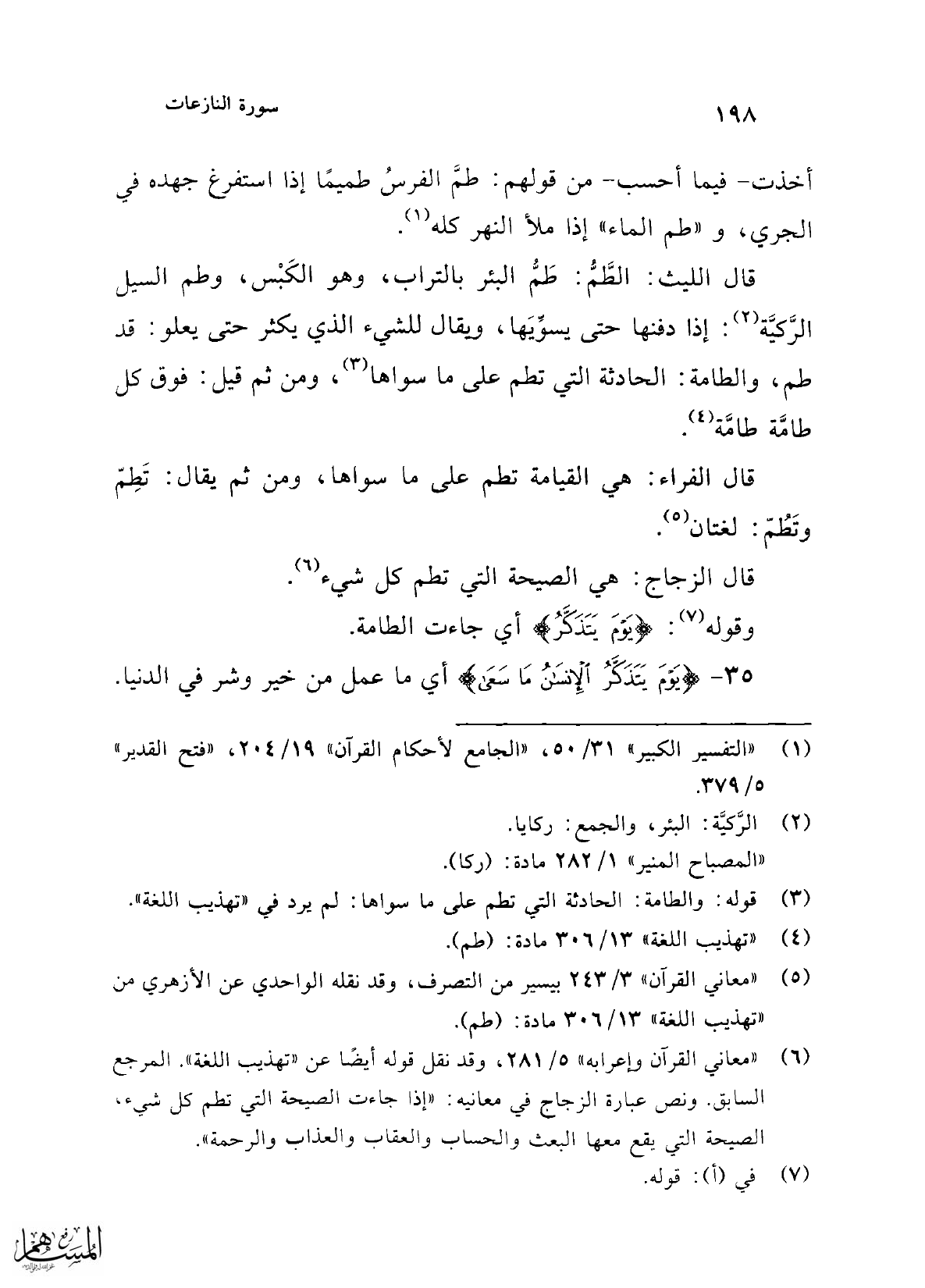 (¬3) قوله: والطامة: الحادثة التي تطم على ما سواها: لم يرد في "تهذيب اللغة".