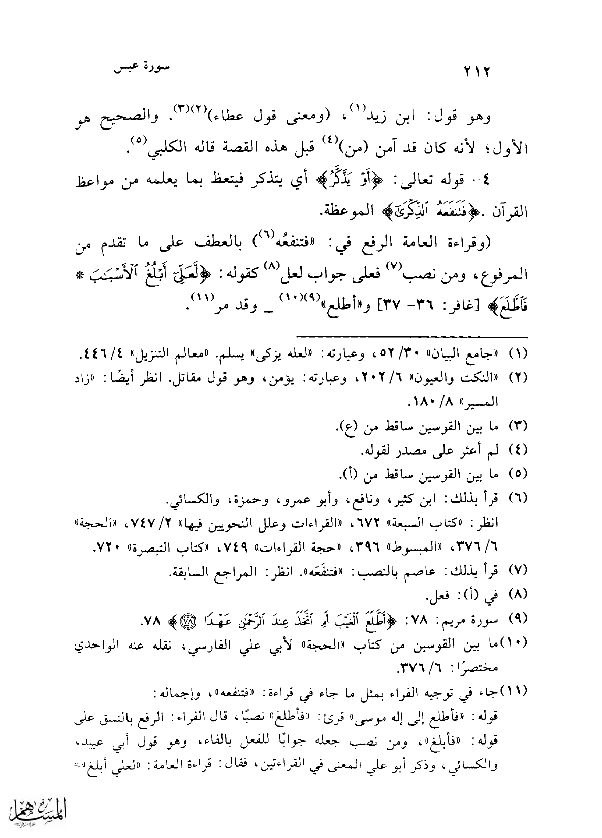 (¬1) "جامع البيان" 30/ 52، وعبارته: "لعله يزكى" يسلم. "معالم التنزيل" 4/ 446.