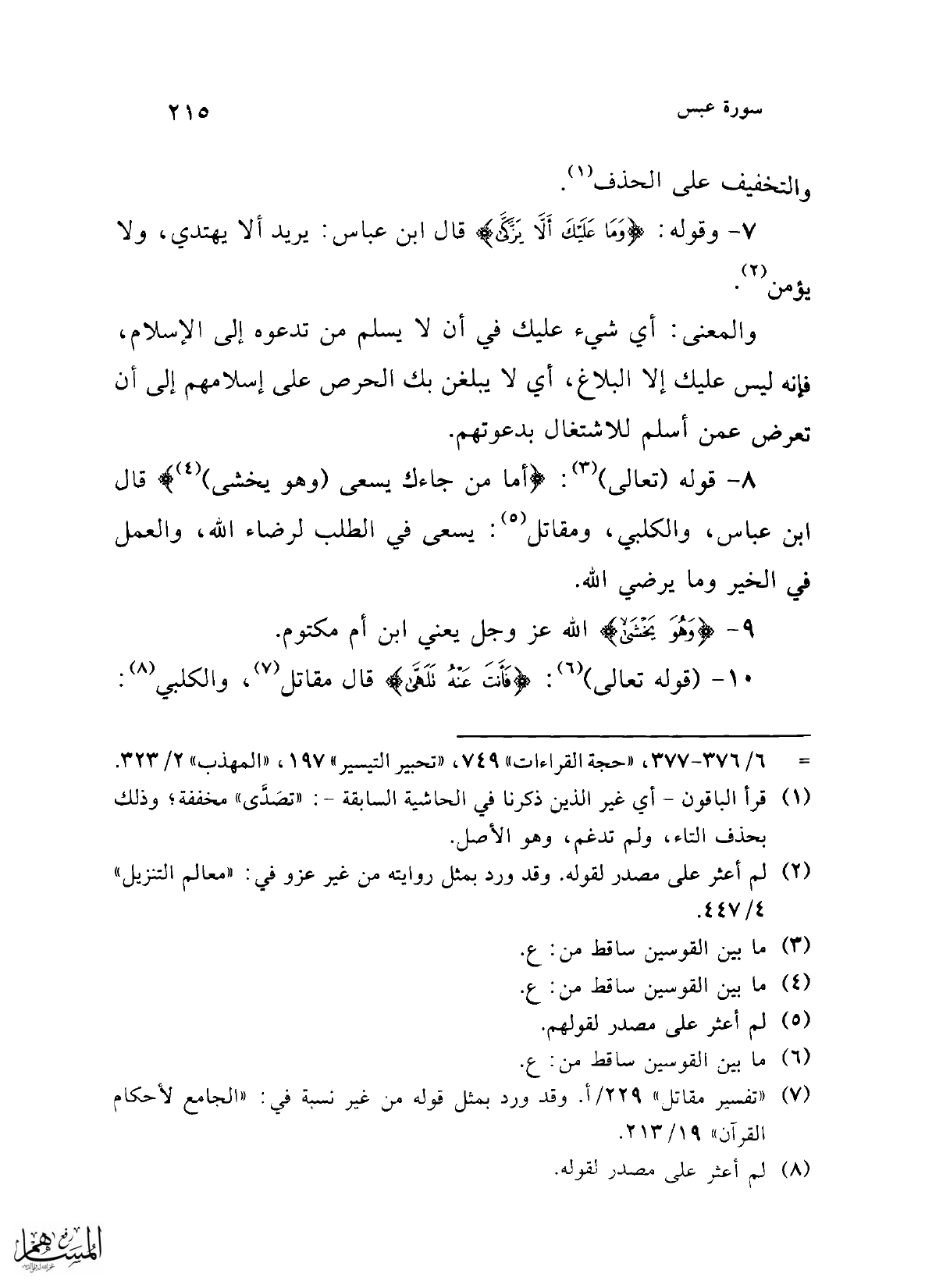 = 6/ 376 - 377، "حجة القراءات" 749، "تحبير التيسير" 197، "المهذب" 2/ 323.