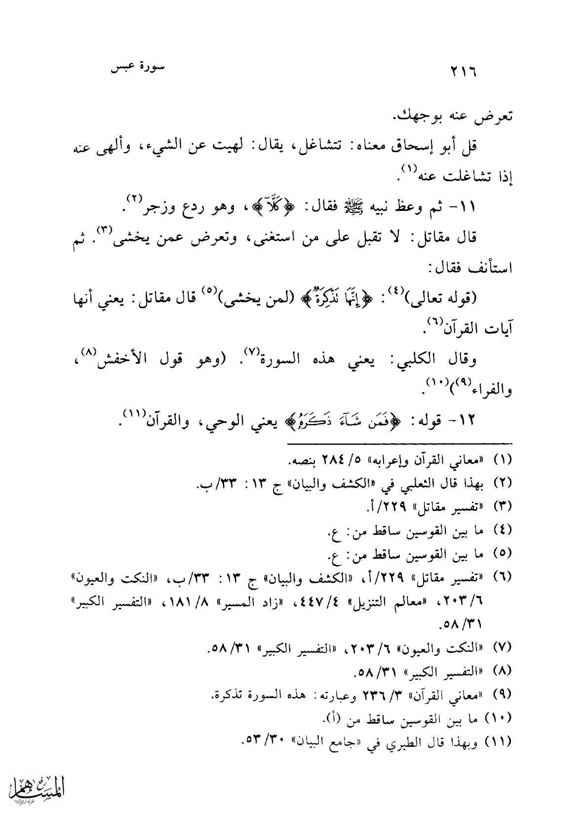 (¬6) "تفسير مقاتل" 229/ أ، "الكشف والبيان" ج13: 33/ ب، "النكت والعيون" 6/ 203، "معالم التنزيل" 4/ 447، "زاد المسير" 8/ 181، "التفسير الكبير" 31/ 58.