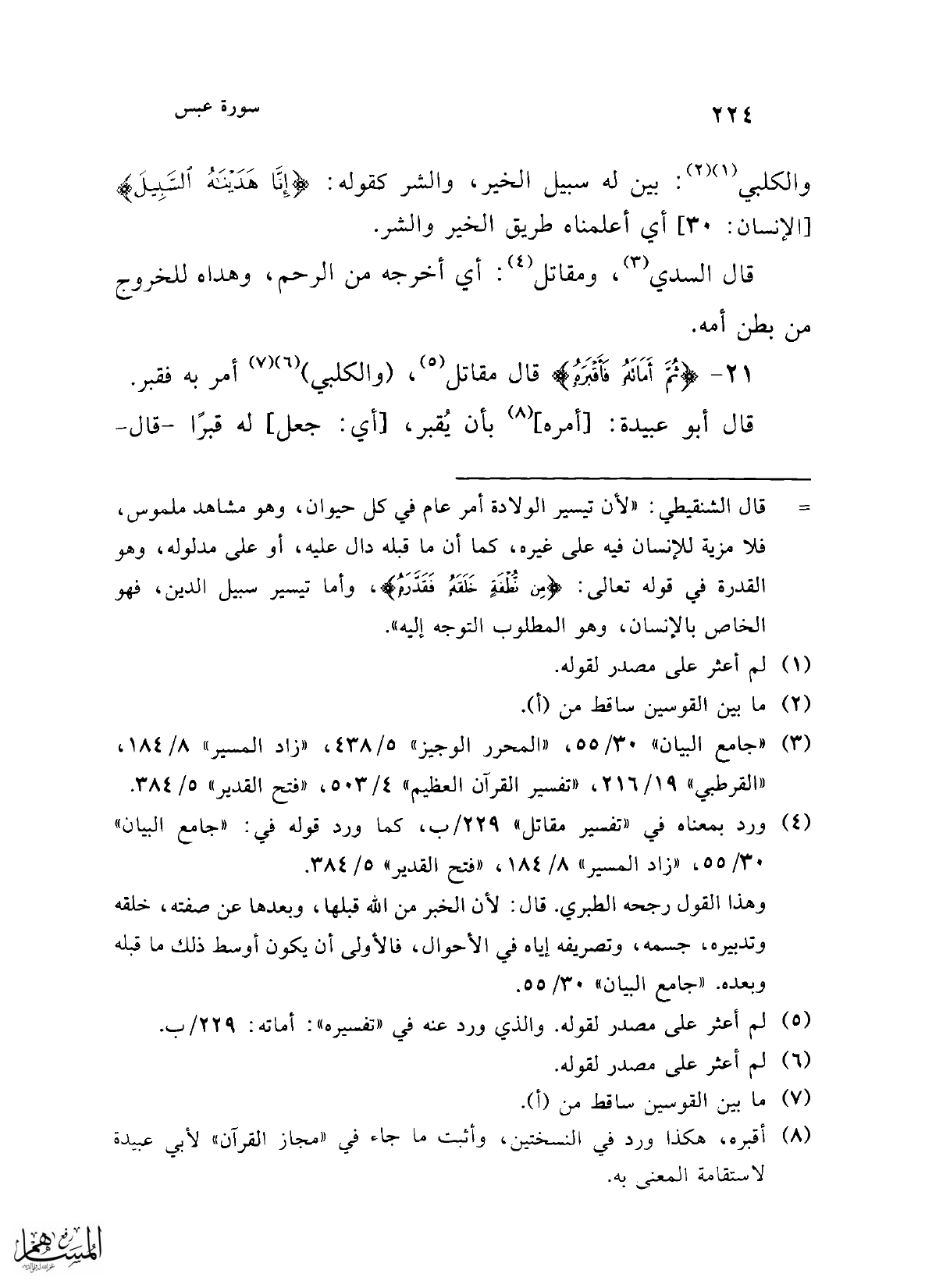 (¬3) "جامع البيان" 30/ 55، "المحرر الوجيز" 5/ 438، "زاد المسير" 8/ 184، "القرطبي" 19/ 216، "تفسير القرآن العظيم" 4/ 503، "فتح القدير" 5/ 384.