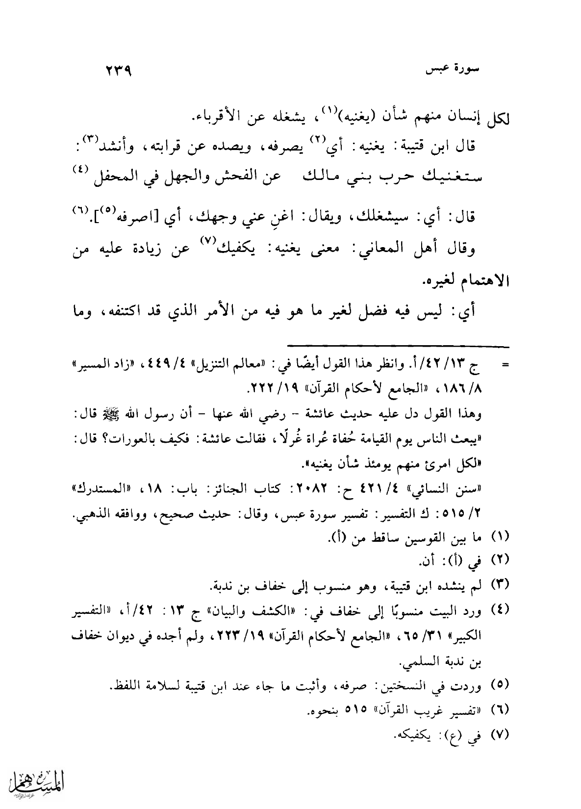 (¬4) ورد البيت منسوبًا إلى خفاف في: "الكشف والبيان" ج 13: 42/ أ، "التفسير الكبير" 31/ 65، "الجامع لأحكام القرآن" 19/ 223، ولم أجده في ديوان خفاف بن ندبة السلمي.