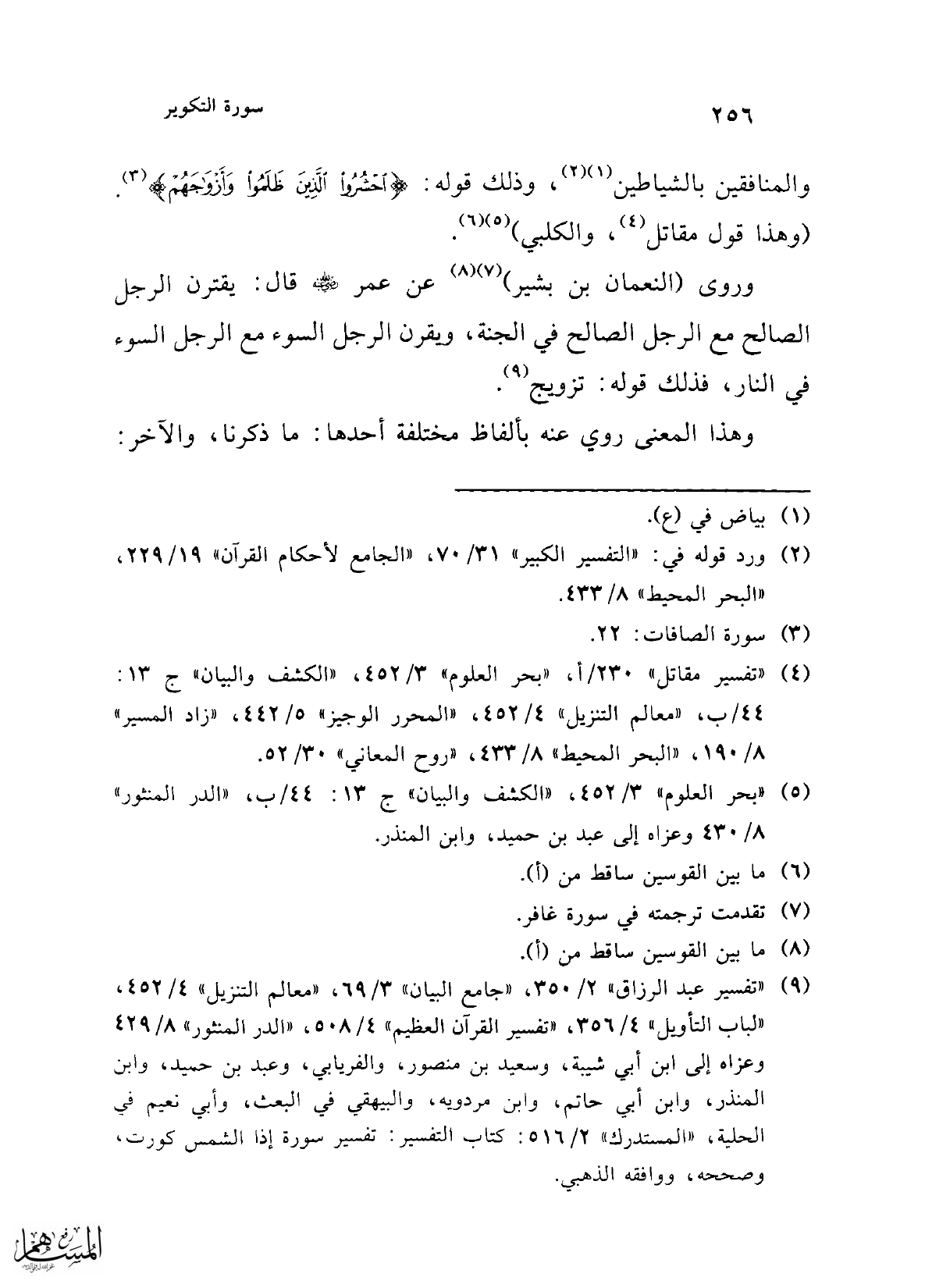 (¬5) "بحر العلوم" 3/ 452، "الكشف والبيان" ج 13: 44/ ب، "الدر المنثور" 8/ 430 وعزاه إلى عبد بن حميد، وابن المنذر.