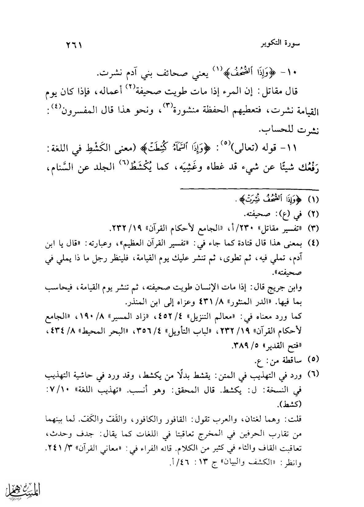 (¬1) {وَإِذَا الصُّحُفُ نُشِرَتْ}.