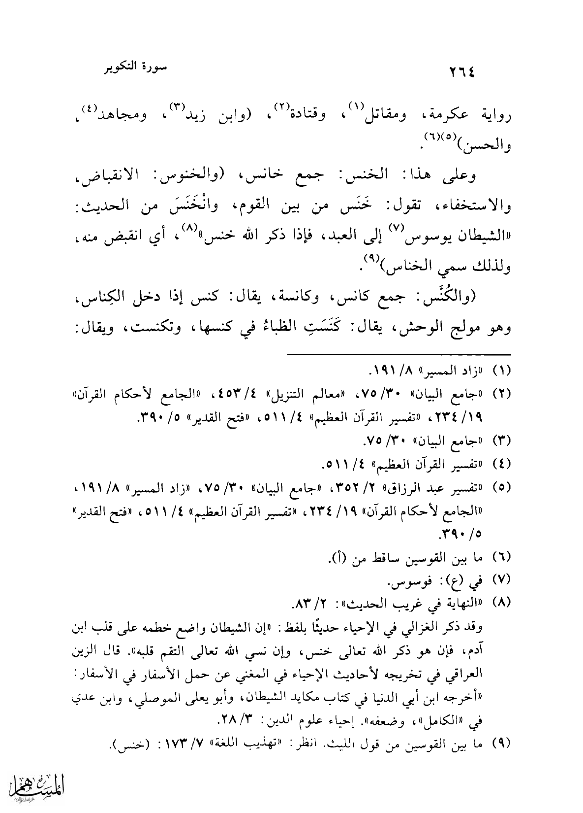 (¬9) ما بين القوسين من قول الليث. انظر: "تهذيب اللغة" 7/ 173: (خنس).
