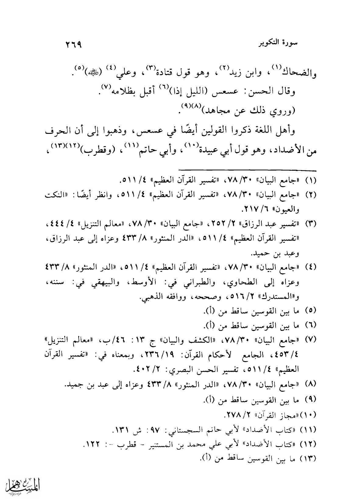 (¬1) "جامع البيان" 30/ 78، "تفسير القرآن العظيم" 4/ 511.