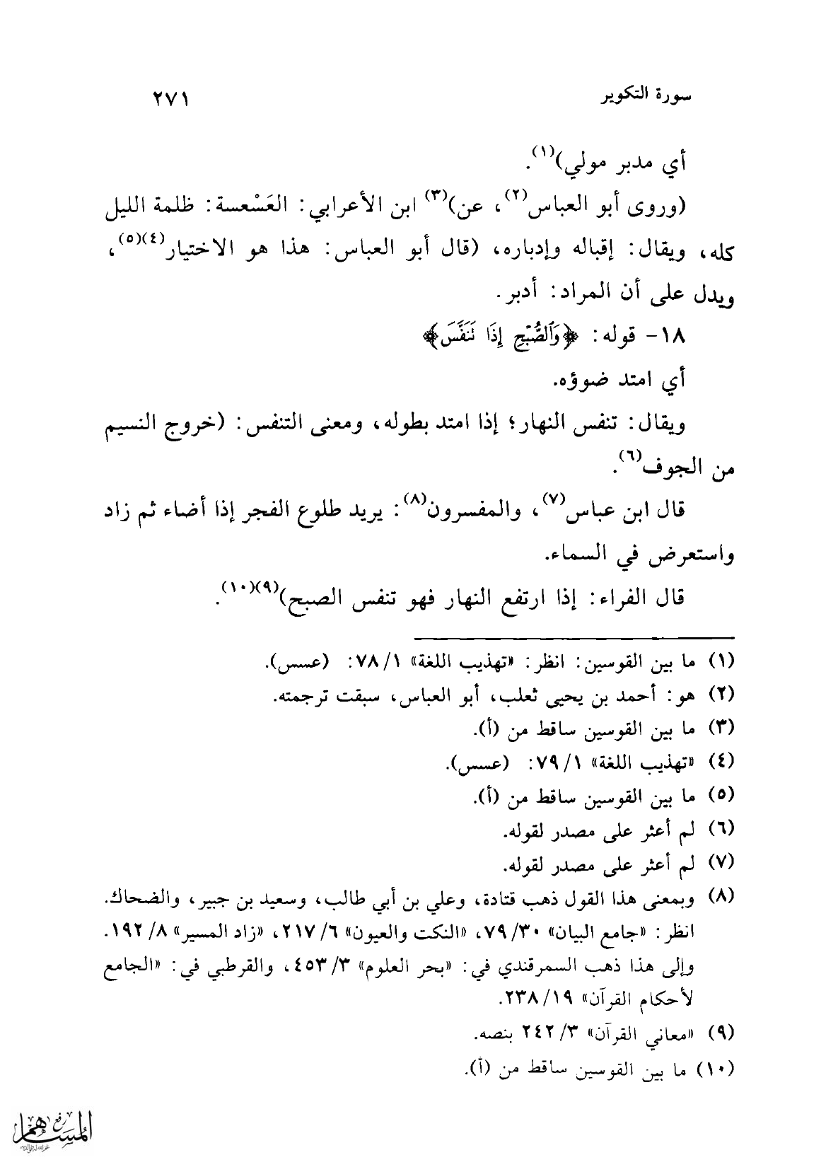 18 - قوله: {وَالصُّبْحِ إِذَا تَنَفَّسَ}