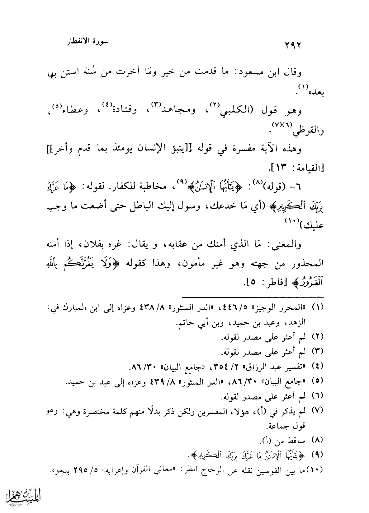 (¬5) "جامع البيان" 30/ 86، "الدر المنثور" 8/ 439 وعزاه إلى عبد بن حميد.