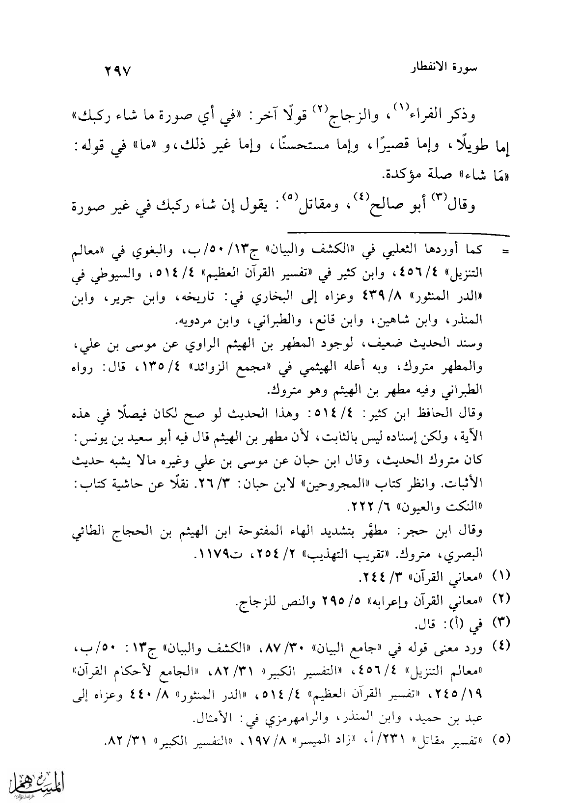 (¬2) "معاني القرآن وإعرابه" 5/ 295 والنص للزجاج.