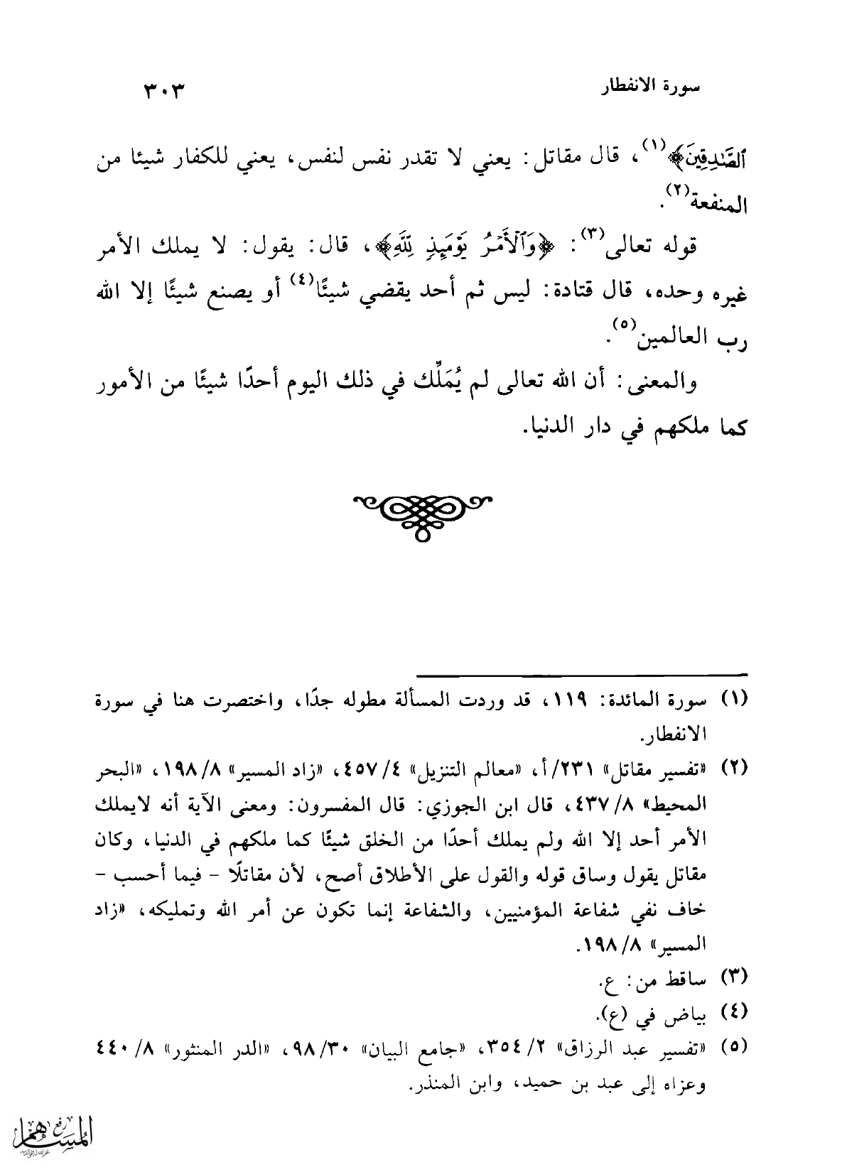 (¬1) سورة المائدة: 119، قد وردت المسألة مطوله جدًا، واختصرت هنا في سورة الانفطار.