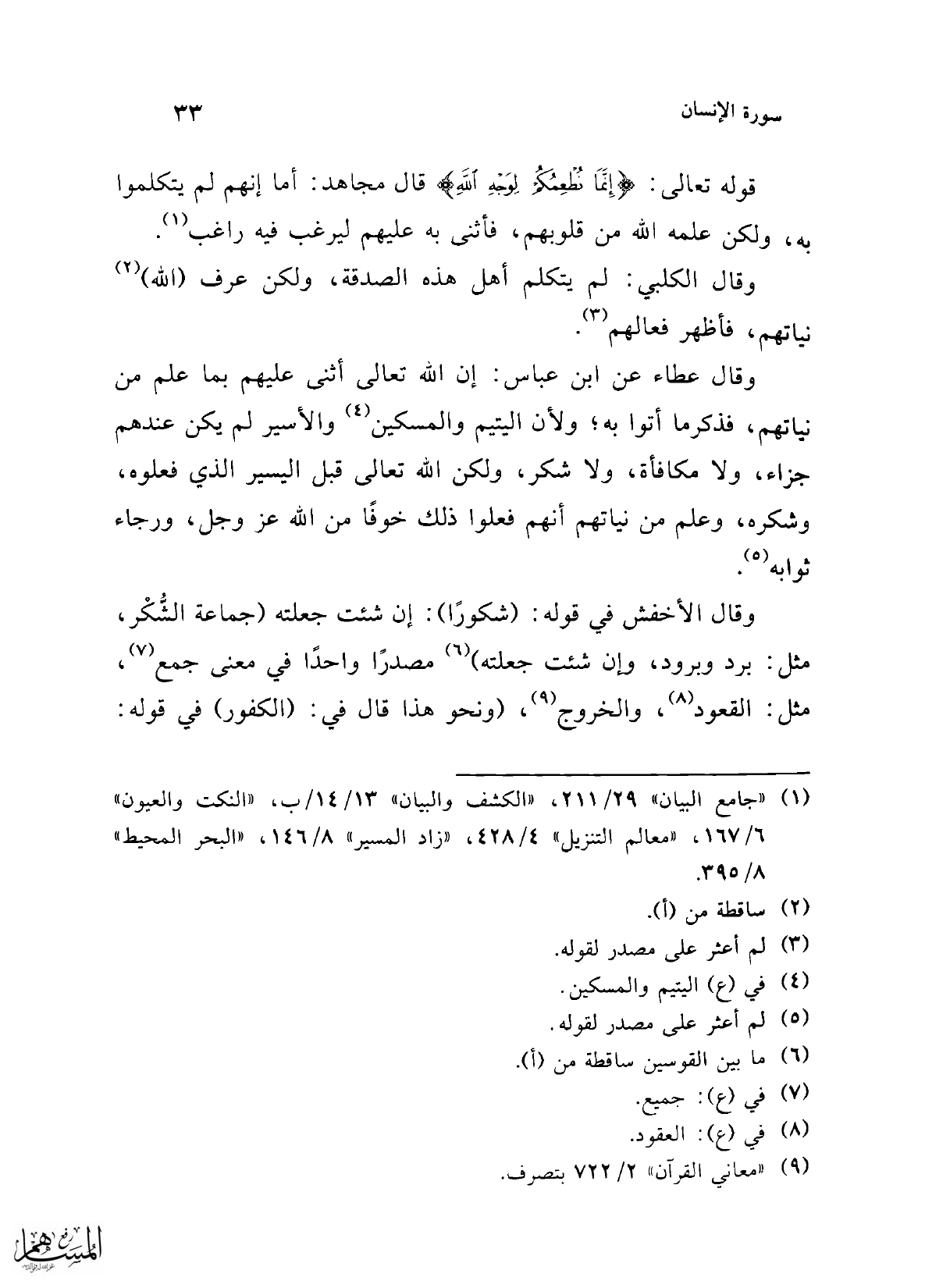 (¬1) "جامع البيان" 29/ 211، "الكشف والبيان" 13/ 14/ ب، "النكت والعيون" 6/ 167، "معالم التنزيل" 4/ 428، "زاد المسير" 8/ 146، "البحر المحيط" 8/ 395.