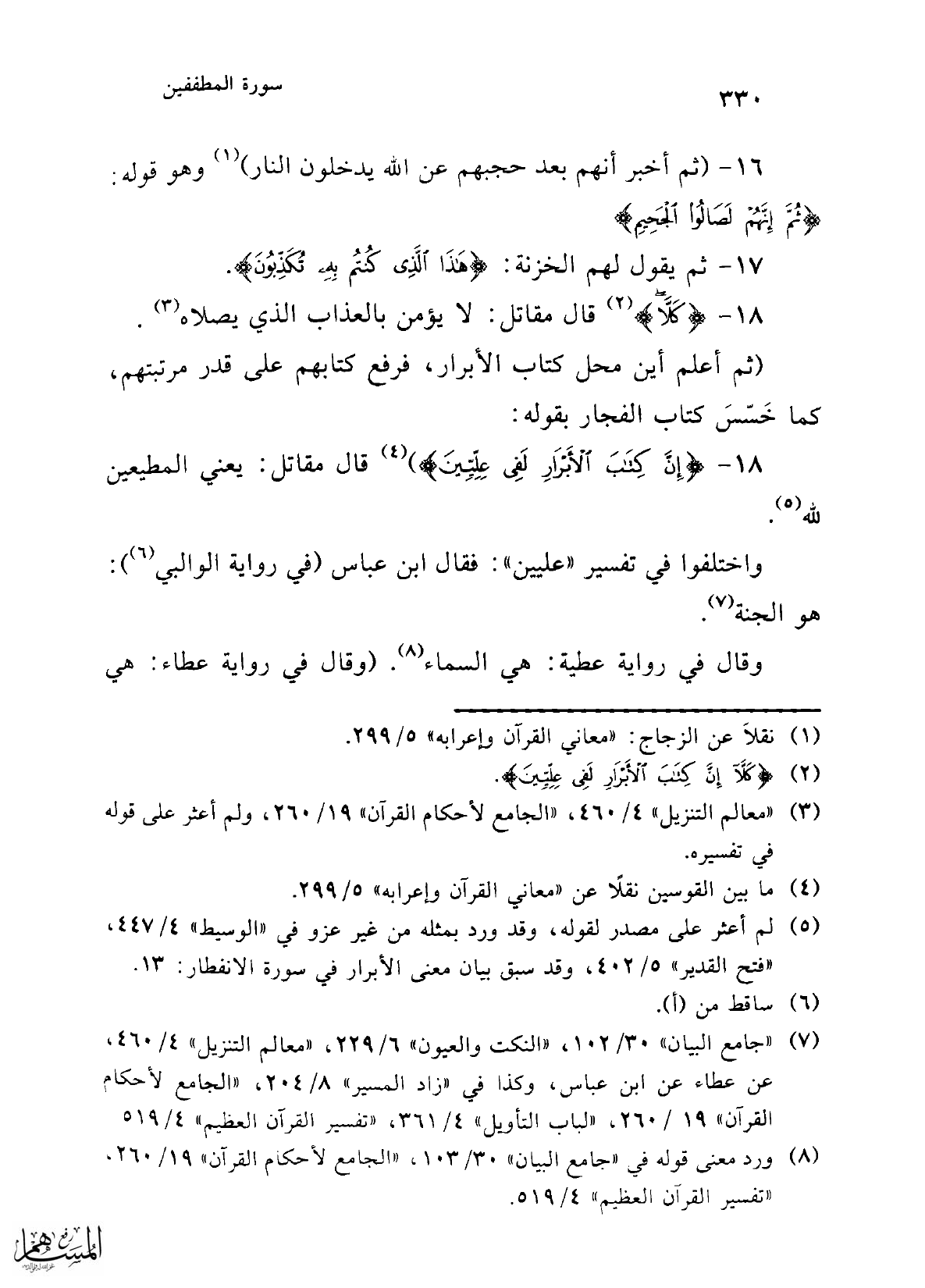 (¬8) ورد معنى قوله في "جامع البيان" 30/ 103، "الجامع لأحكام القرآن" 19/ 260، "تفسير القرآن العظيم" 4/ 519.