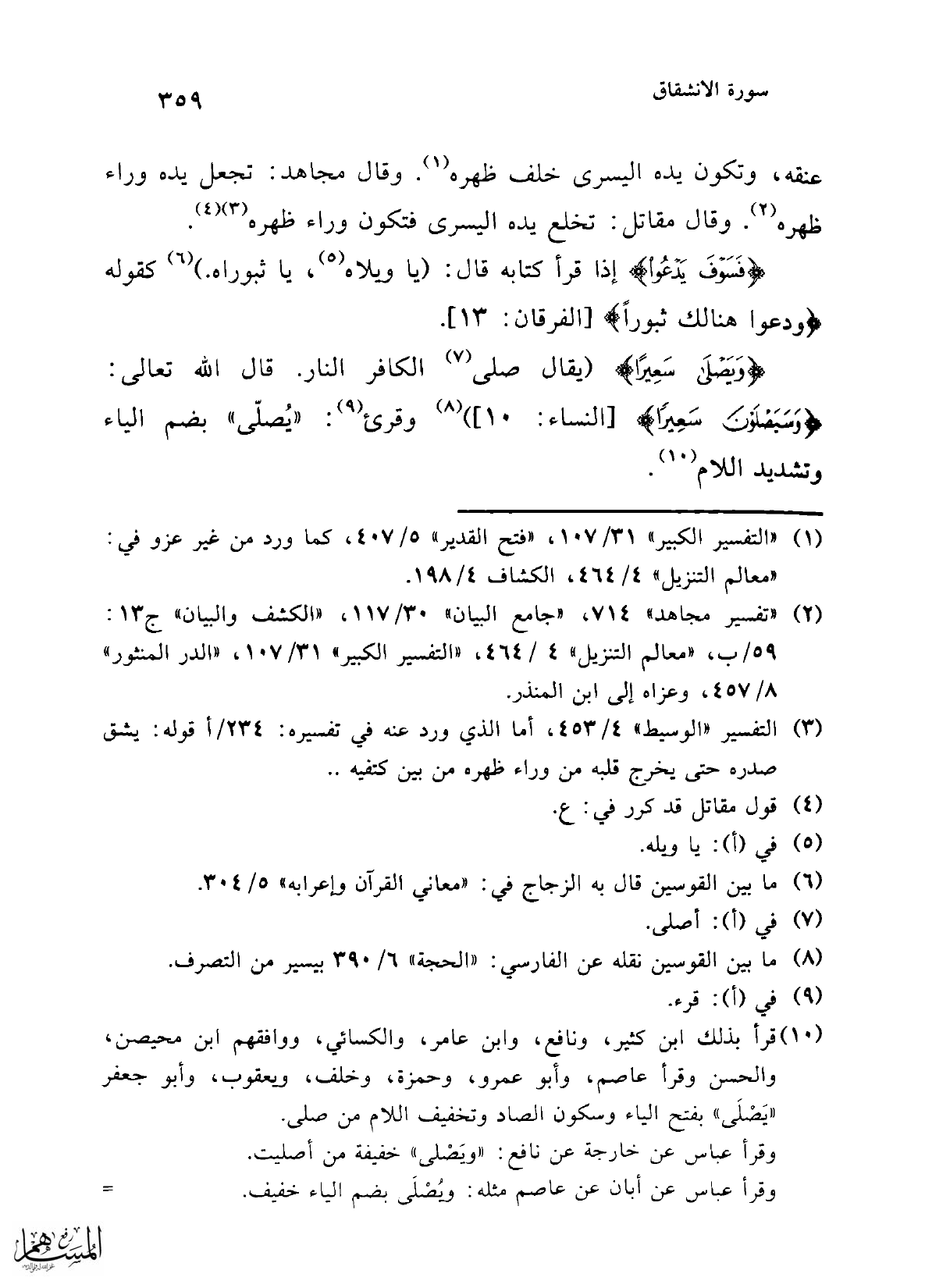 (¬2) "تفسير مجاهد" 714، "جامع البيان" 30/ 117، "الكشف والبيان" ج 13: 59/ ب، "معالم التنزيل" 4/ 464، "التفسير الكبير" 31/ 107، "الدر المنثور" 8/ 457، وعزاه إلى ابن المنذر.