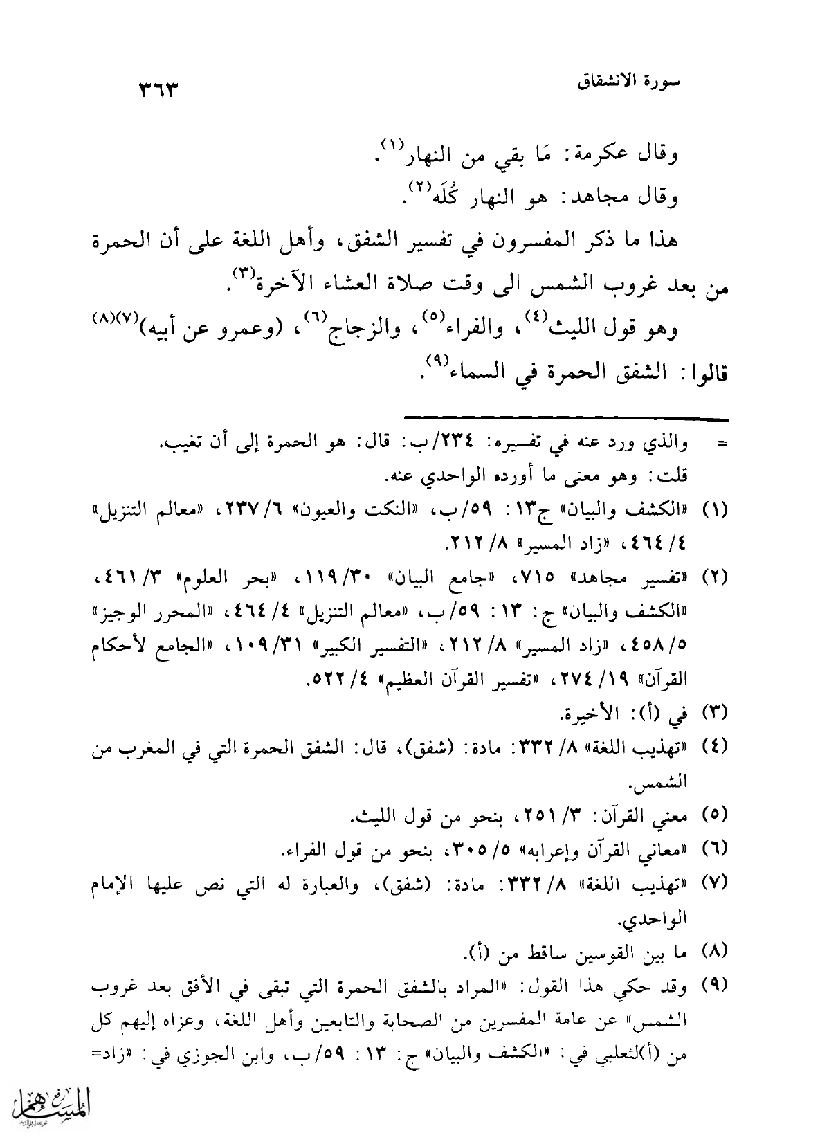 (¬7) "تهذيب اللغة" 8/ 332: مادة: (شفق)، والعبارة له التي نص عليها الإمام الواحدي.
