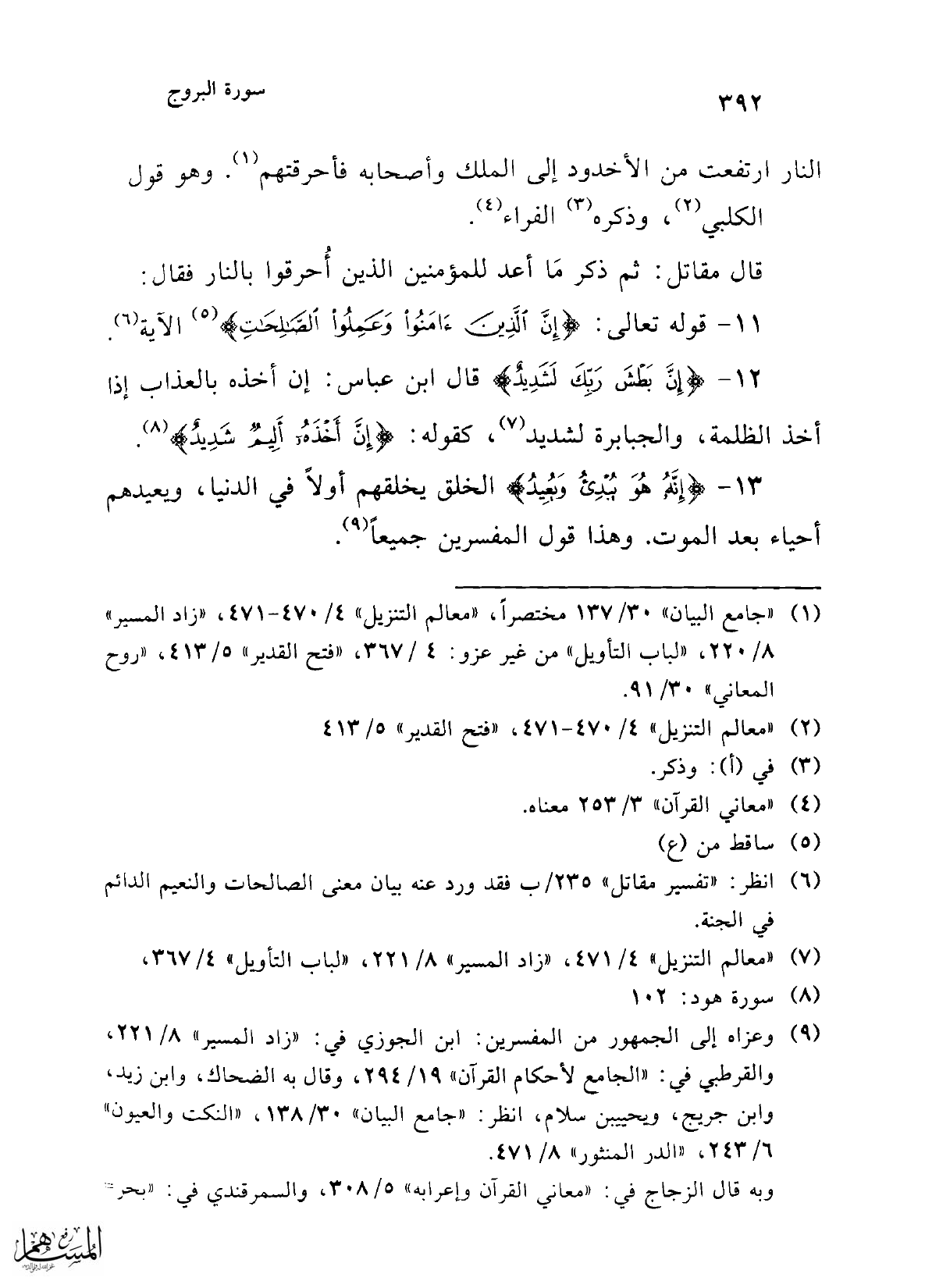 12 - {إِنَّ بَطْشَ رَبِّكَ لَشَدِيدٌ} قال ابن عباس: إن أخذه بالعذاب إذا أخذ الظلمة، والجبابرة لشديد (¬7)، كقوله: {إِنَّ أَخْذَهُ أَلِيمٌ شَدِيدٌ} (¬8).