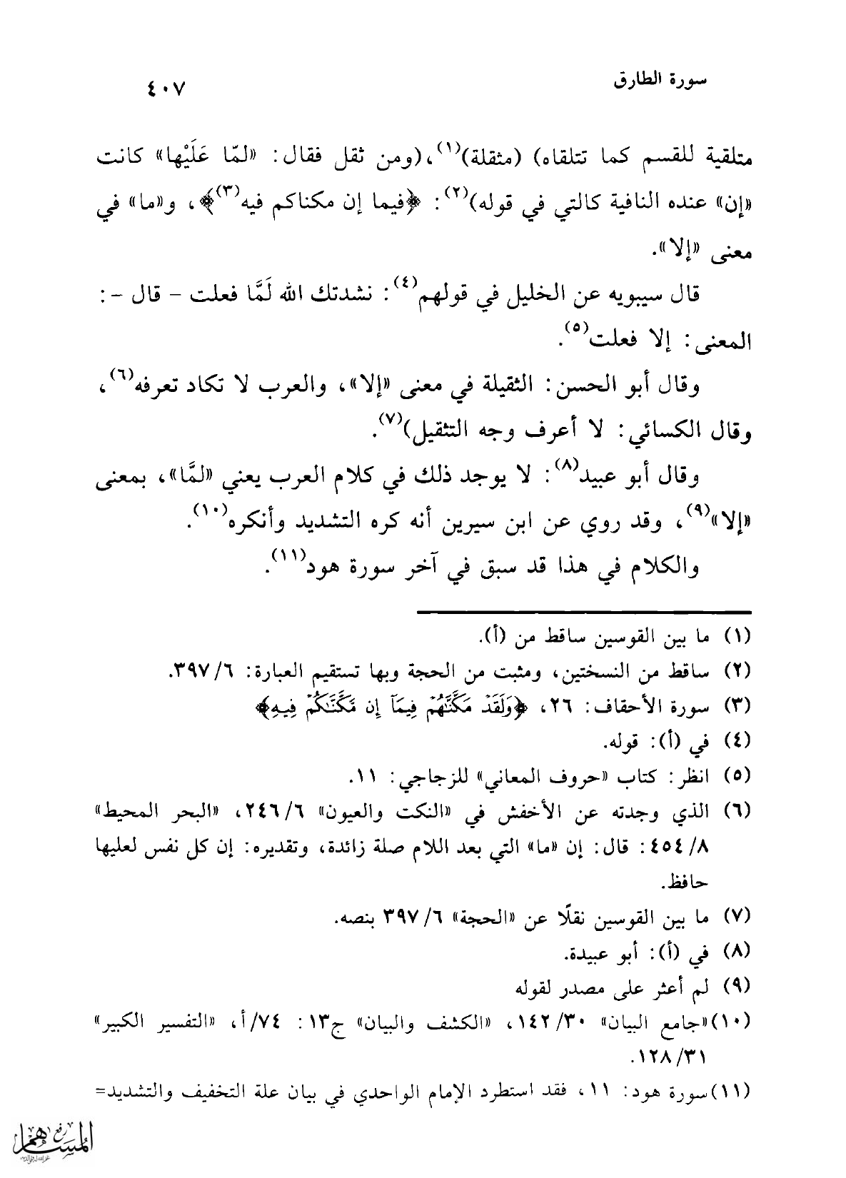 (¬10) "جامع البيان" 30/ 142، "الكشف والبيان" ج 13: 74/ أ، "التفسير الكبير" 31/ 128.