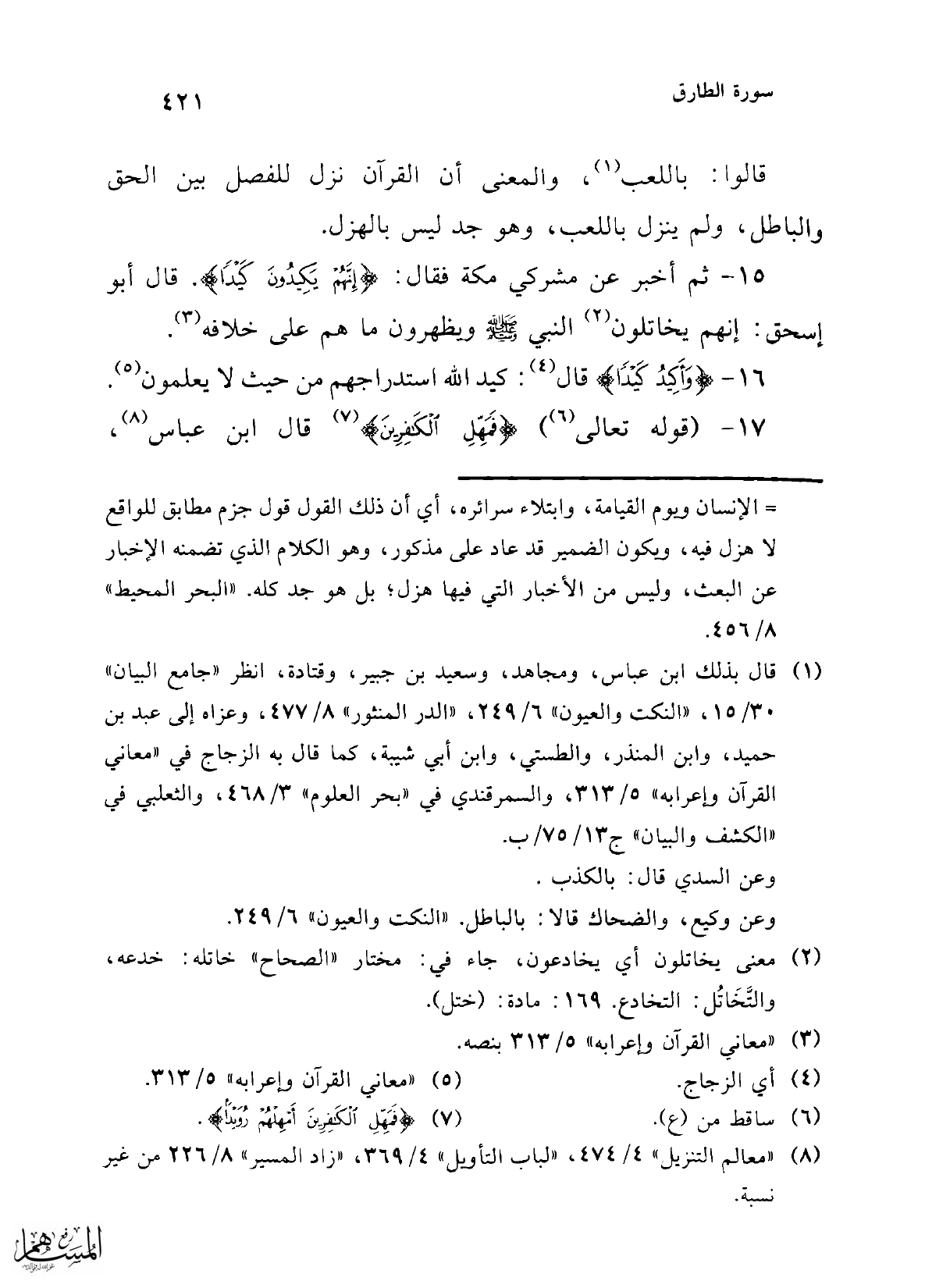 15 - ثم أخبر عن مشركي مكهَ فقال: {إِنَّهُمْ يَكِيدُونَ كَيْدًا}. قال أبو إسحق: إنهم يخاتلون (¬2) النبي -صلى الله عليه وسلم- ويظهرون ما هم على خلافه (¬3).